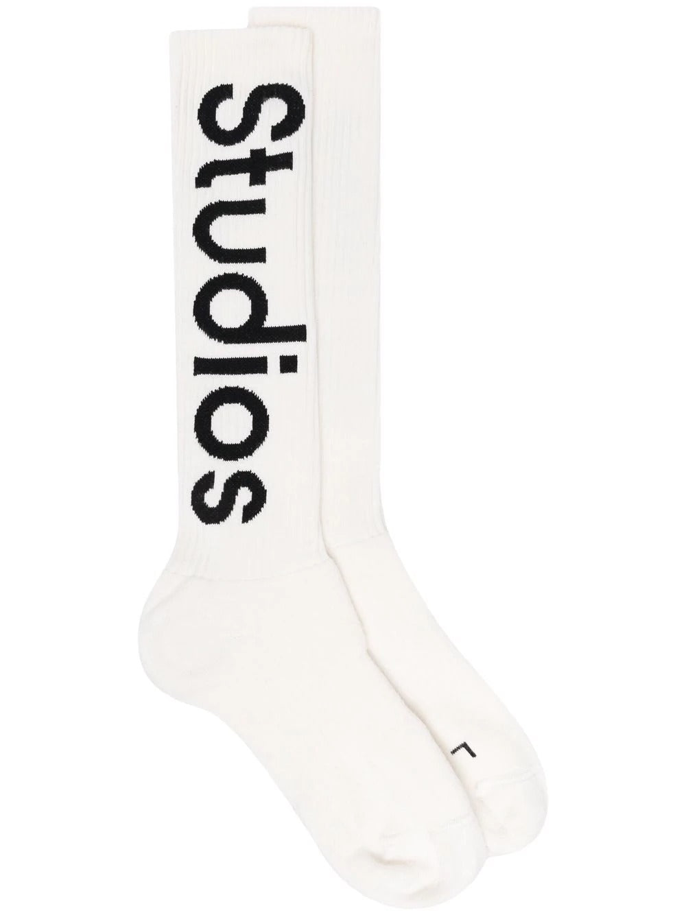 Stay stylish and comfortable all day with these Long Rib Socks from Acne Studios. Made from a stretchy cotton blend, these socks feature breathable ribbed cuffs and bold, contrasting branding. The perfect combination of fashion and functionality. Available in white.