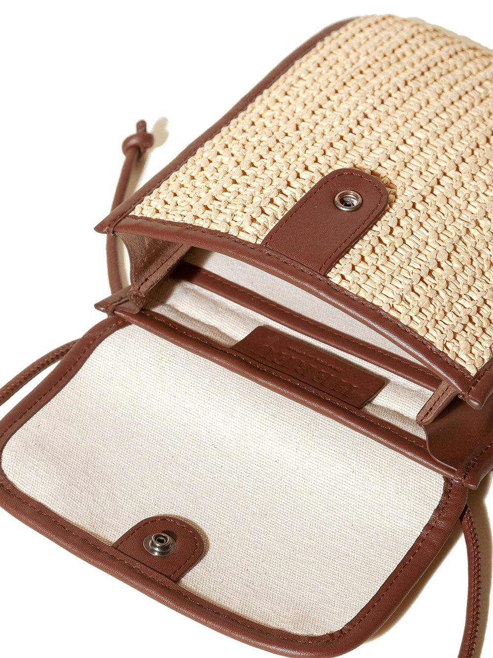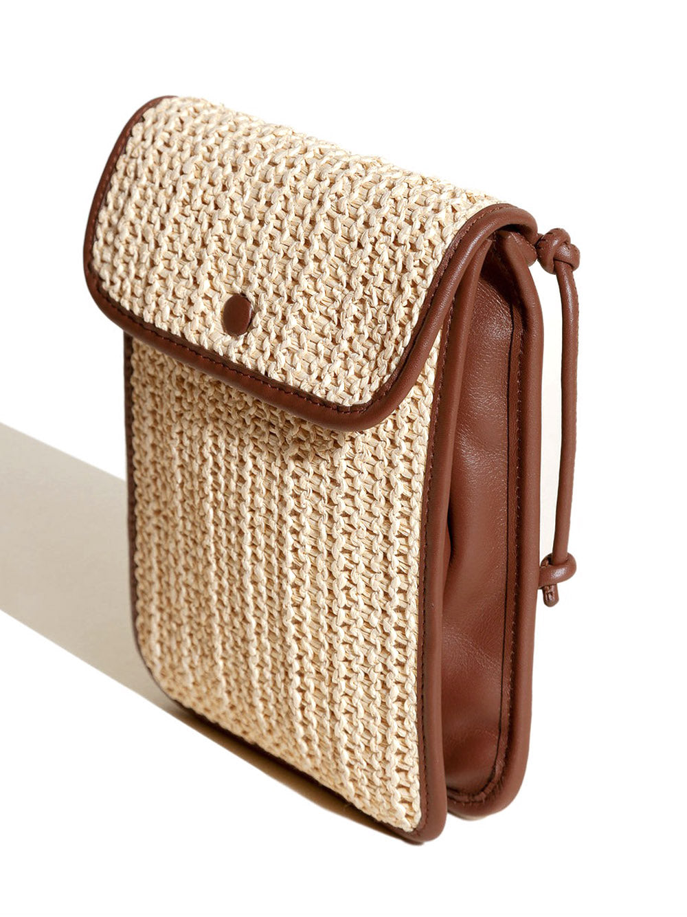 This light beige Terra Raffia CROSS BODY BAG combines natural texture with practical design. The secure press-stud closure and adjustable shoulder strap offer versatile wearing options, while the fully lined interior with convenient slip pocket keeps essentials organized. A sophisticated yet playful accessory that effortlessly transitions from day to evening.