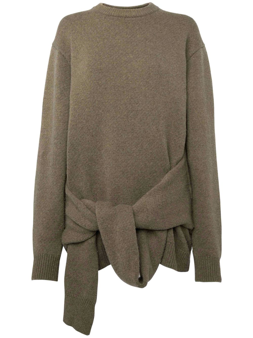 Get ready to cozy up in our DRAPED TIE FRONT JUMPER. The warm, beige hue adds a touch of rustic charm while the front tie fastening and ribbed cuffs and hem keep things cinched and comfy. Perfect for those chilly days, it's the ultimate in crew neck, drop shoulder style.