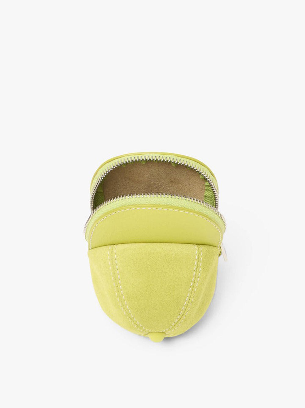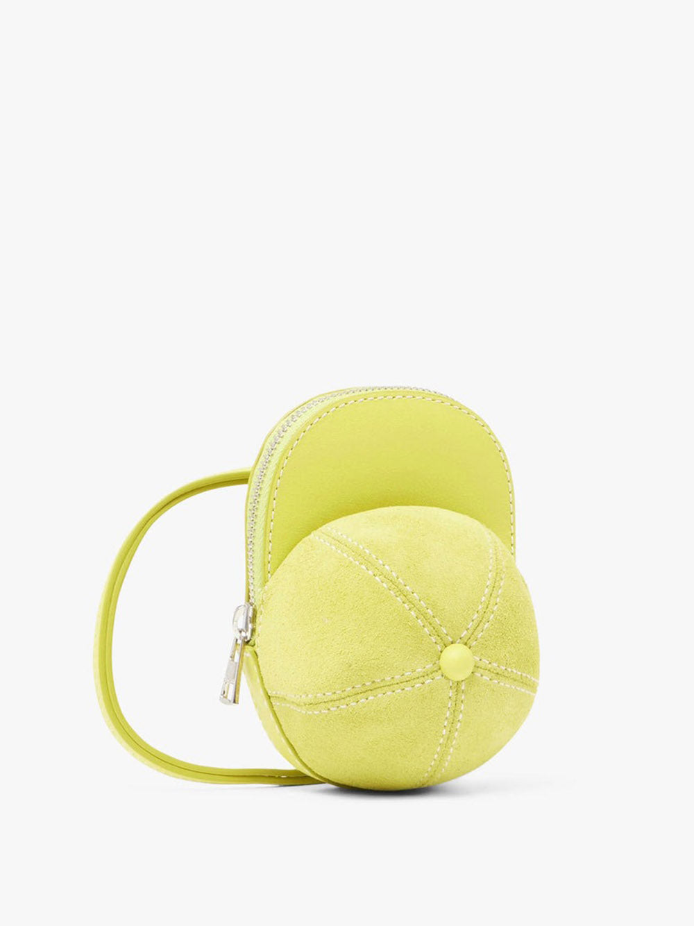 Introducing the NANO CAP BAG - a mini crossbody bag with an adjustable leather strap for ultimate comfort. Made with luxurious suede and calf leather, featuring topstitching details and silver tone hardware. Keep it fresh with our lime color option. Zip open with a branded puller and blind logo embossing on the back panel. The perfect mix of style and convenience.