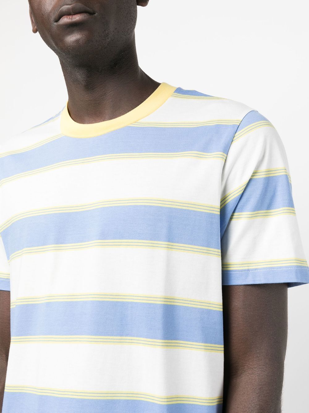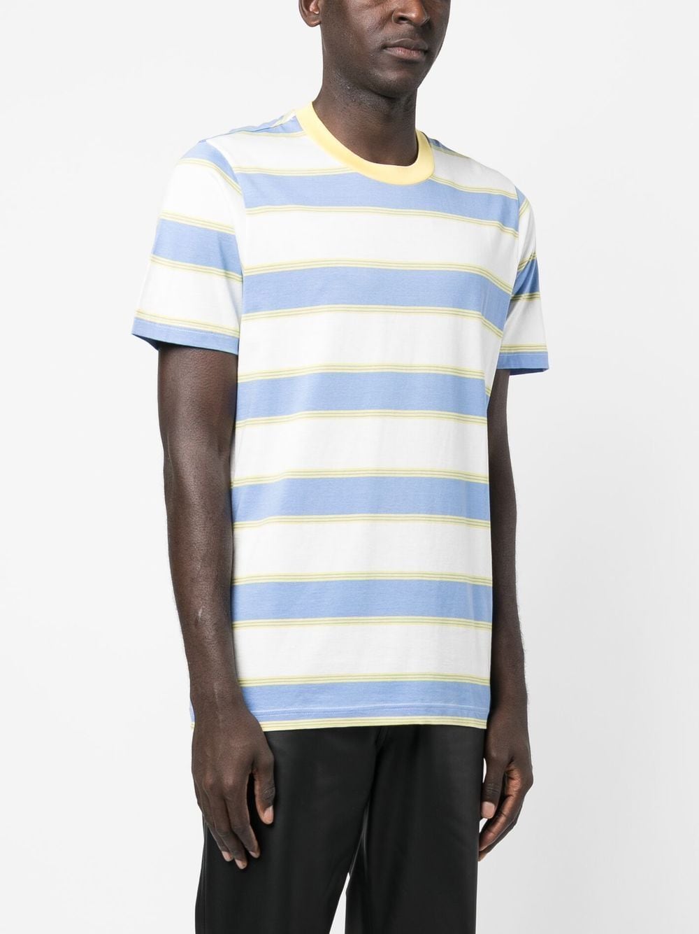 Get ready to stripe it rich with these 3 pack striped t-shirts from MARNI! Made from 100% soft cotton, they feature a classic blue and white stripe print, round neckline, and short sleeves. Versatile and timeless, these tees are a must-have for any wardrobe.