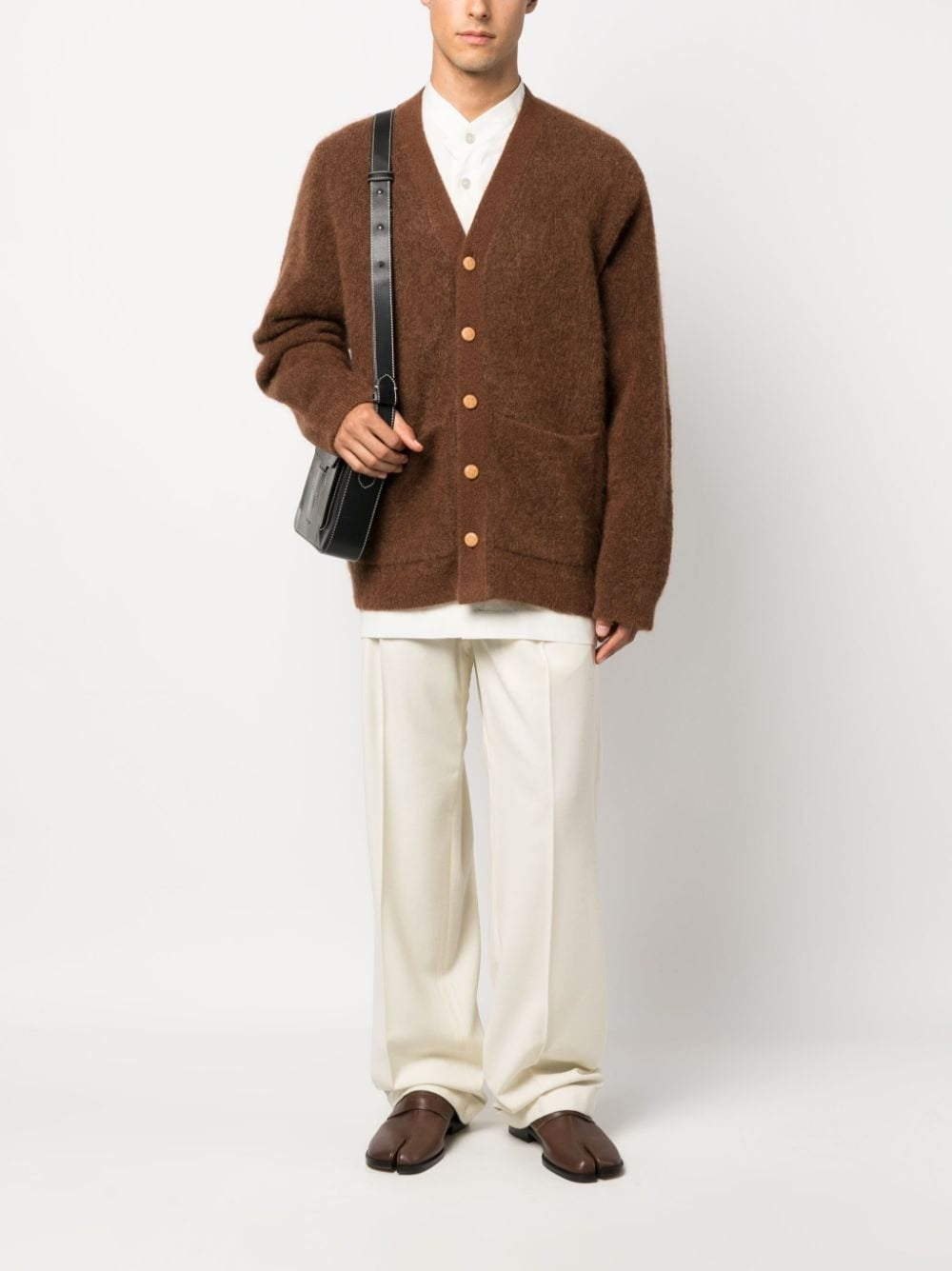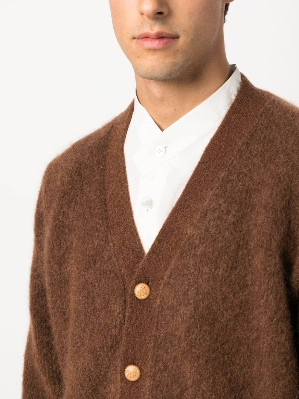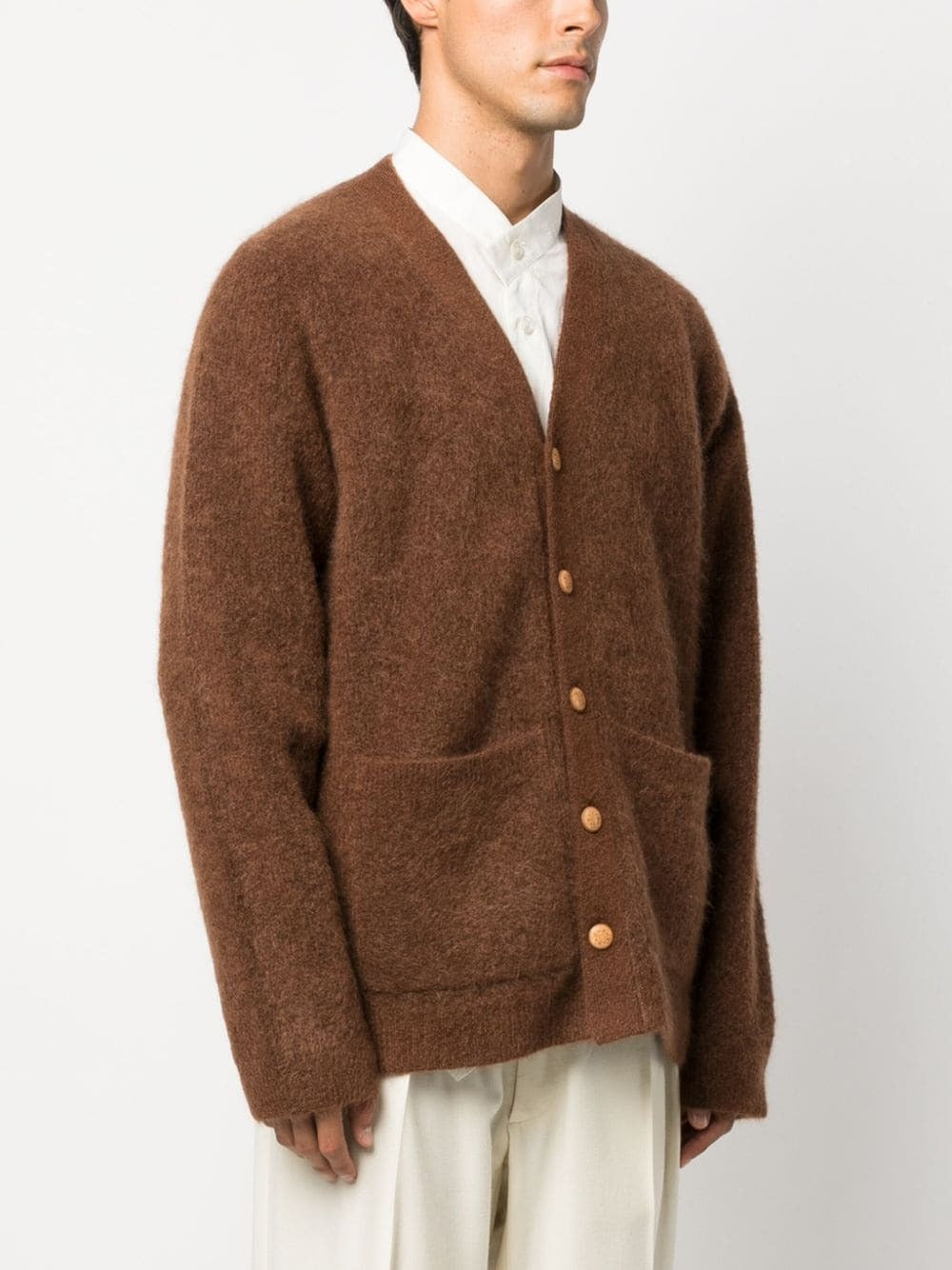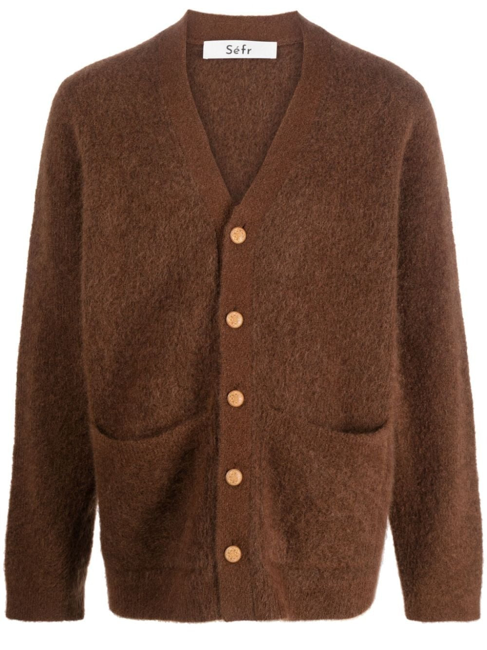 Introducing the KAITO CARDIGAN - a playful twist on the classic cardigan. Made with a blend of soft mohair in a rich chocolate brown, this V-neck sweater features a brushed finish, gold buttons, and practical pockets. Perfect for adding a touch of fun and warmth to any outfit.