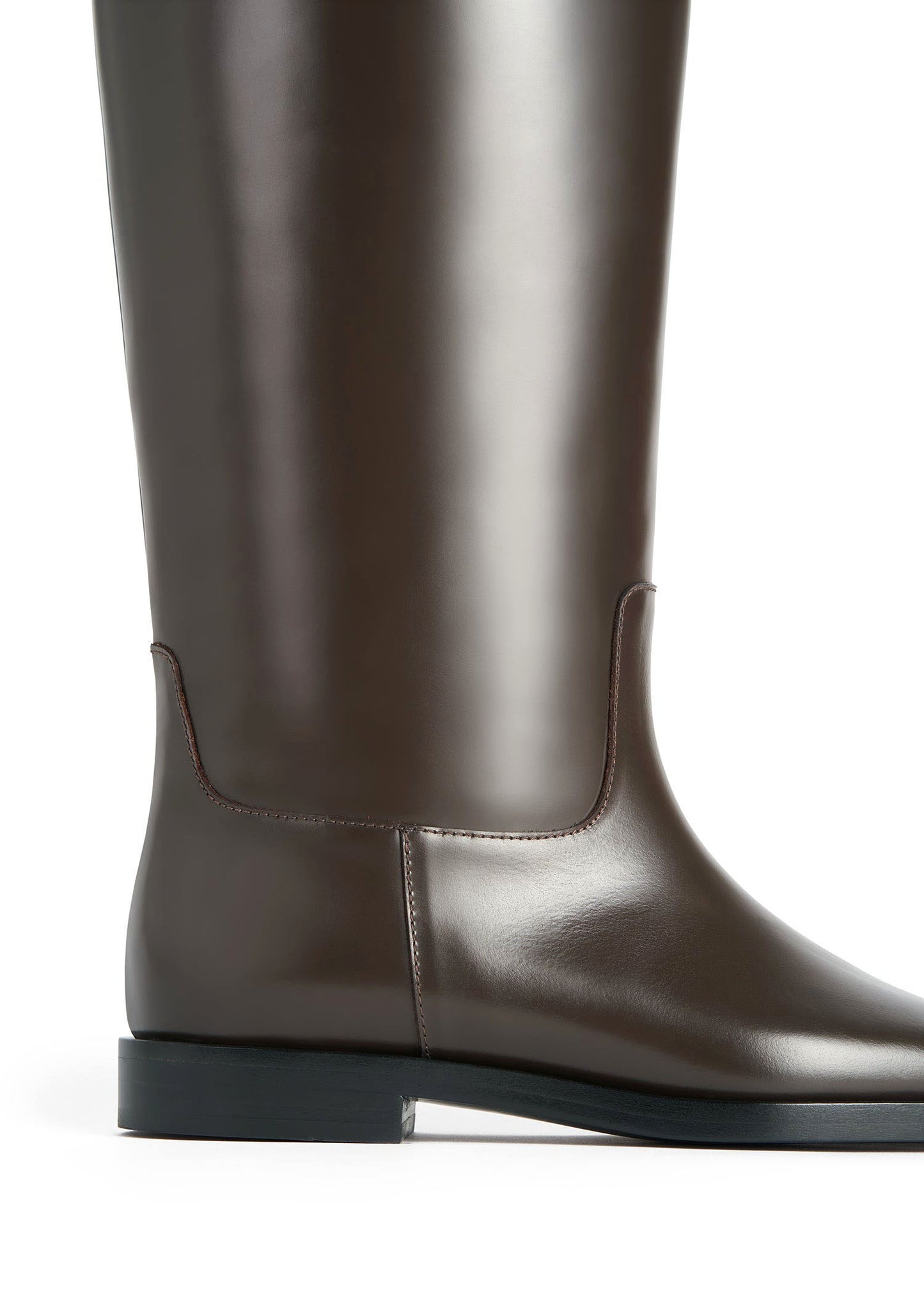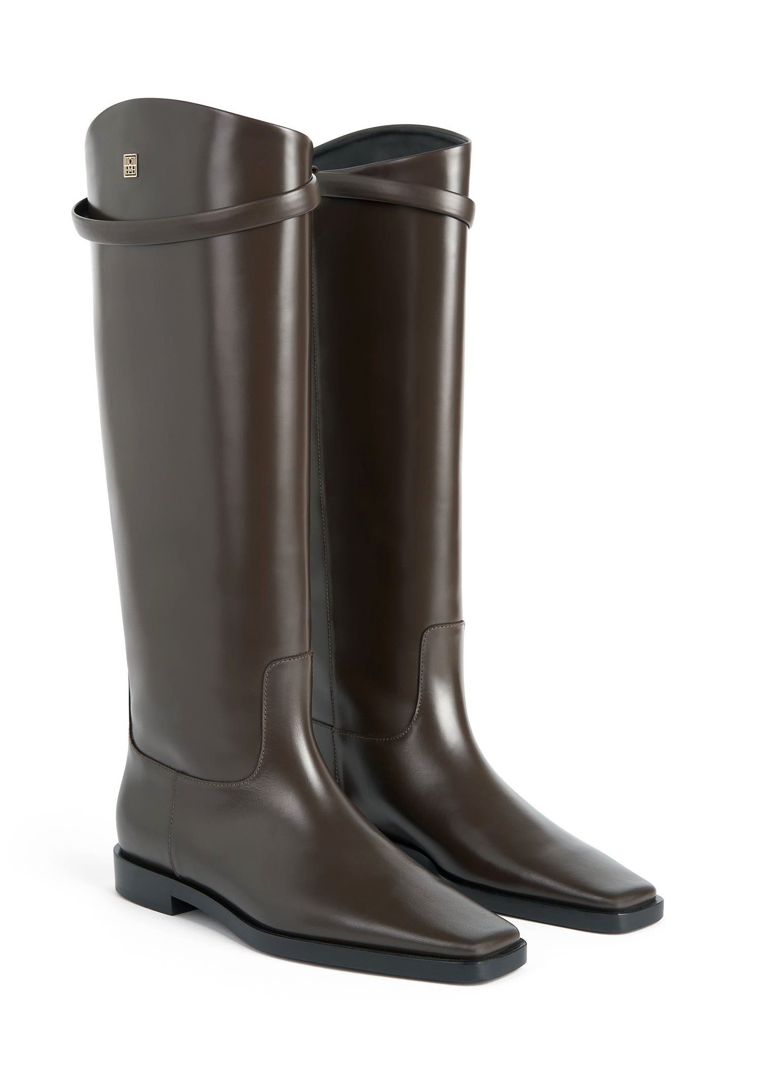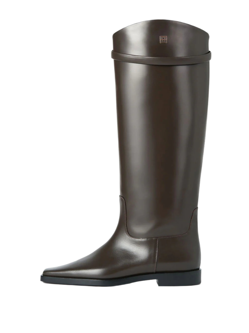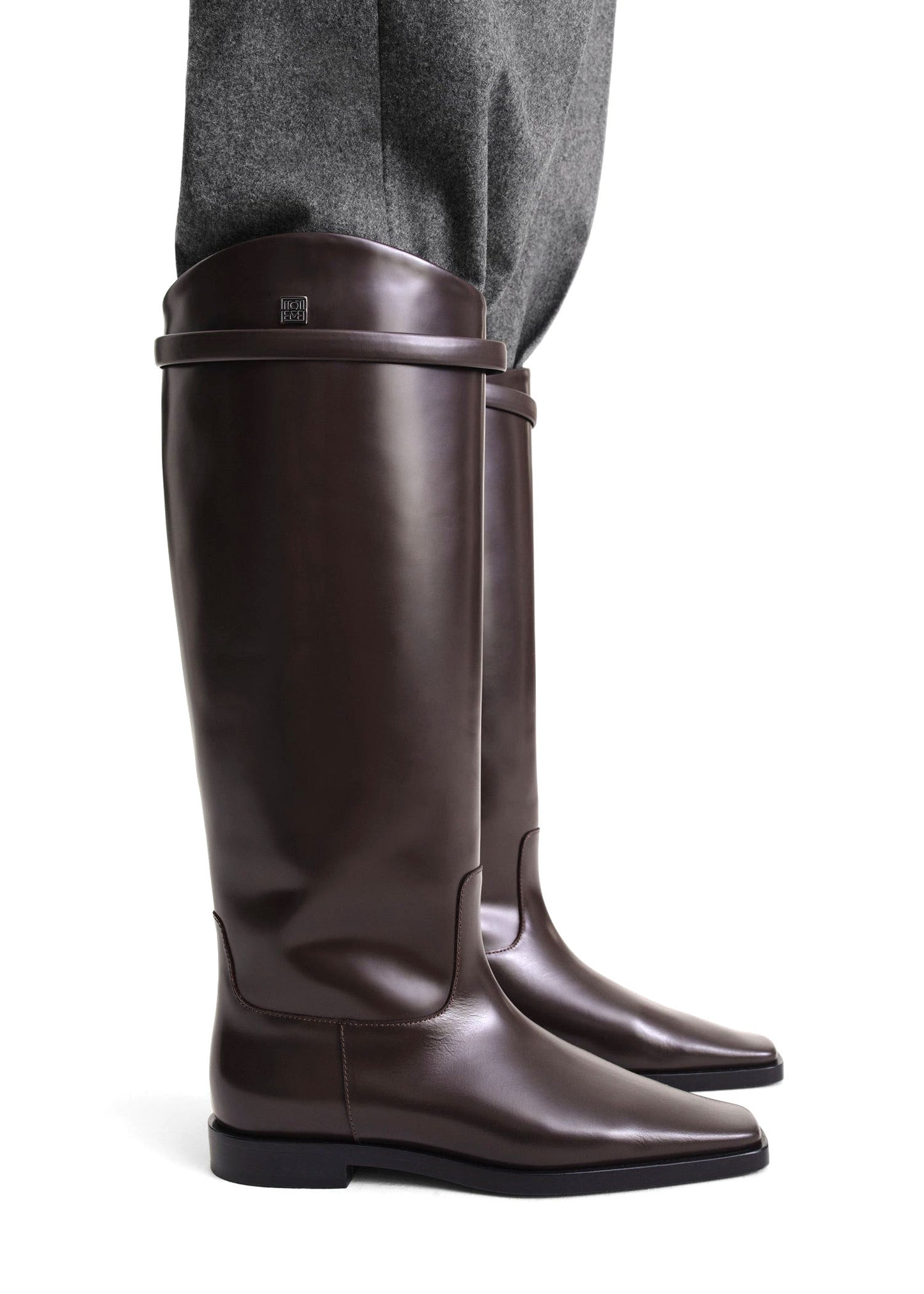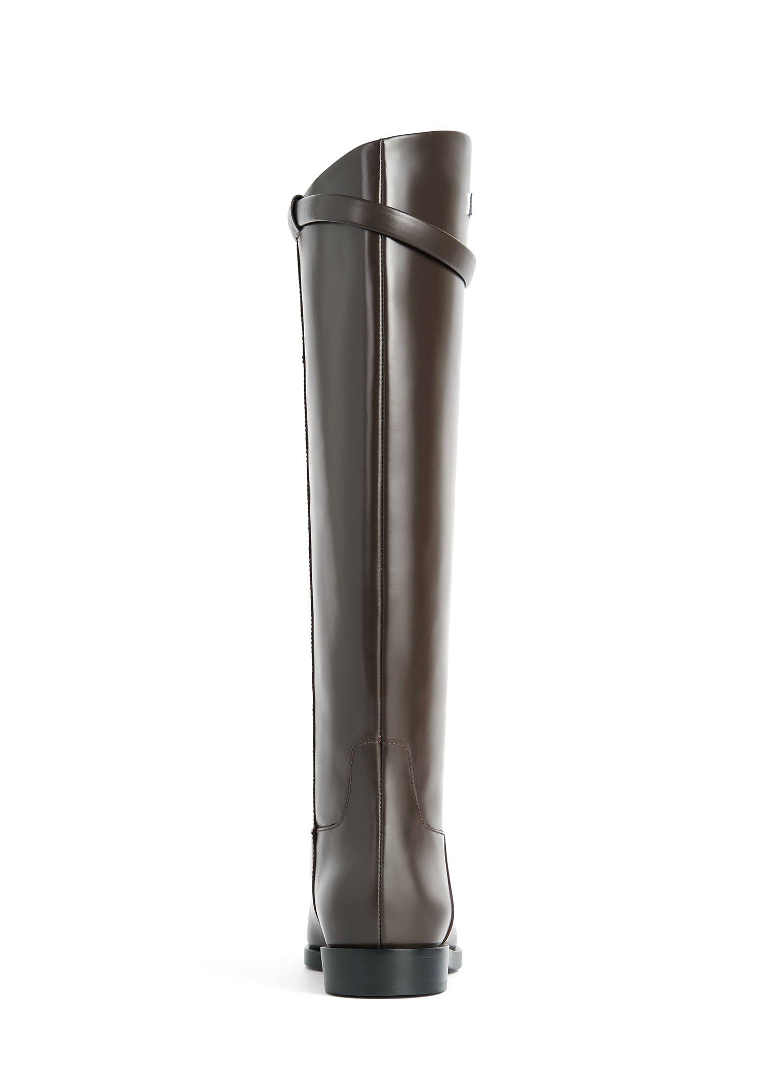 Introducing The Riding Boot: stylish, versatile, and coffee-brown color.The gold-tone metal monogram plaque adds flare, while the brown leather lining keeps you comfortable on your adventures. Perfect for any occasion.