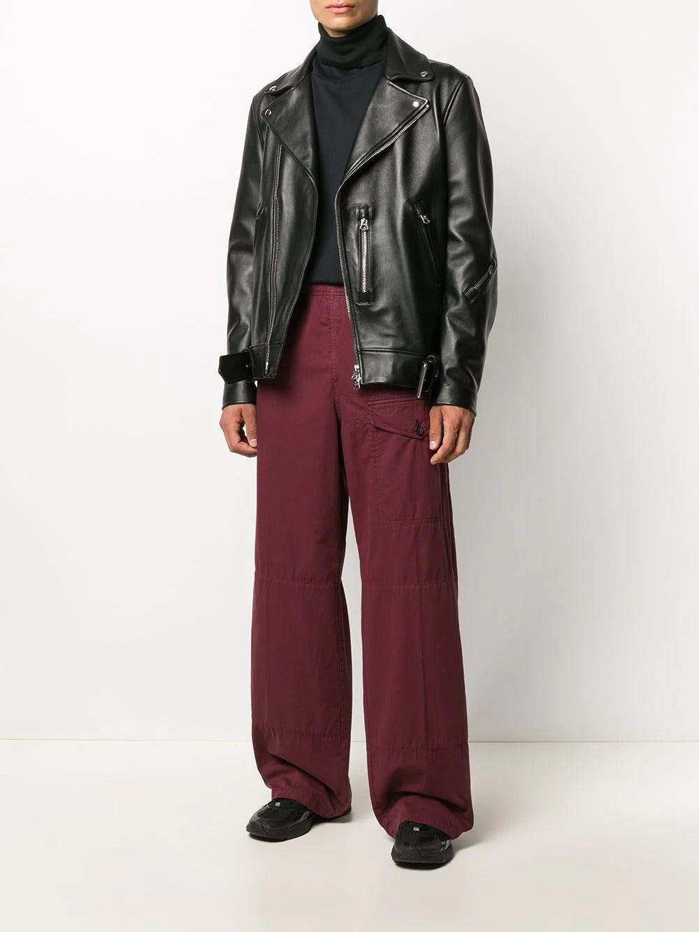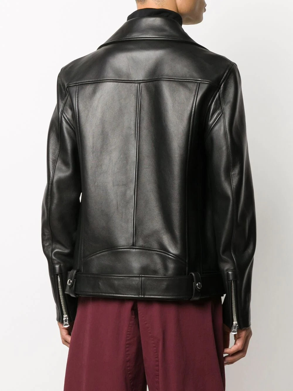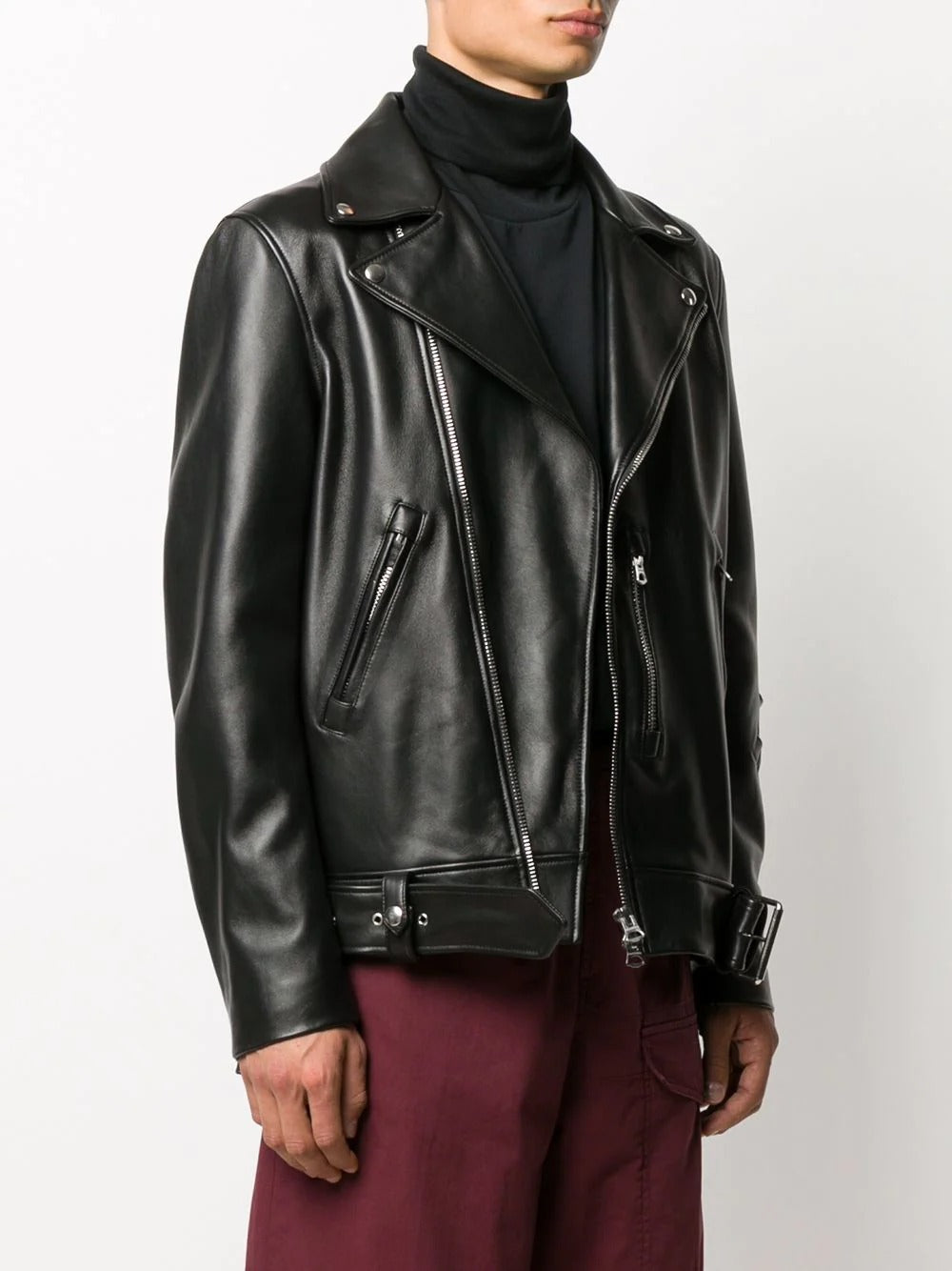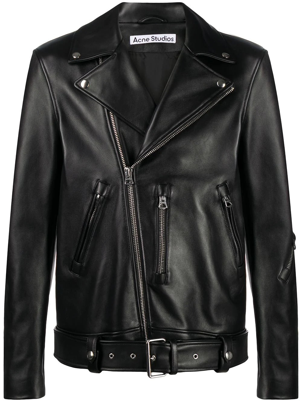 Add some edge to your wardrobe with this leather jacket from Acne Studios. With plenty of pockets and a chunky belt, it's perfect for adding a biker-inspired touch to any outfit. Plus, the soft lining and classic design make it comfortable and versatile. Available in black.
