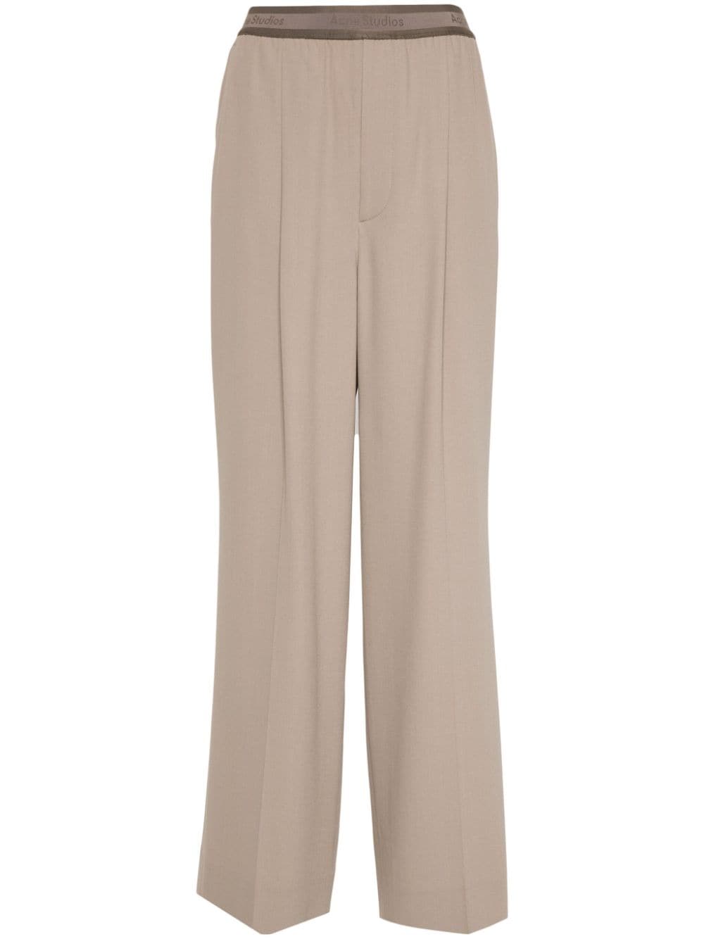 Be bold and stylish in our camel beige Logo Tape Trousers! Made from a twill wool blend, these relaxed fit trousers have a fluid and crisp hand-feel. The Acne Studios logo tape elasticated waistband adds a playful touch, while the mid-waist and wide leg provide comfortable wear. Plus, the side and back pockets offer convenience and functionality.