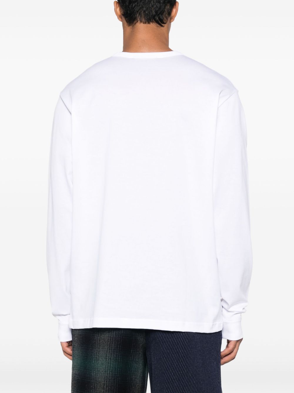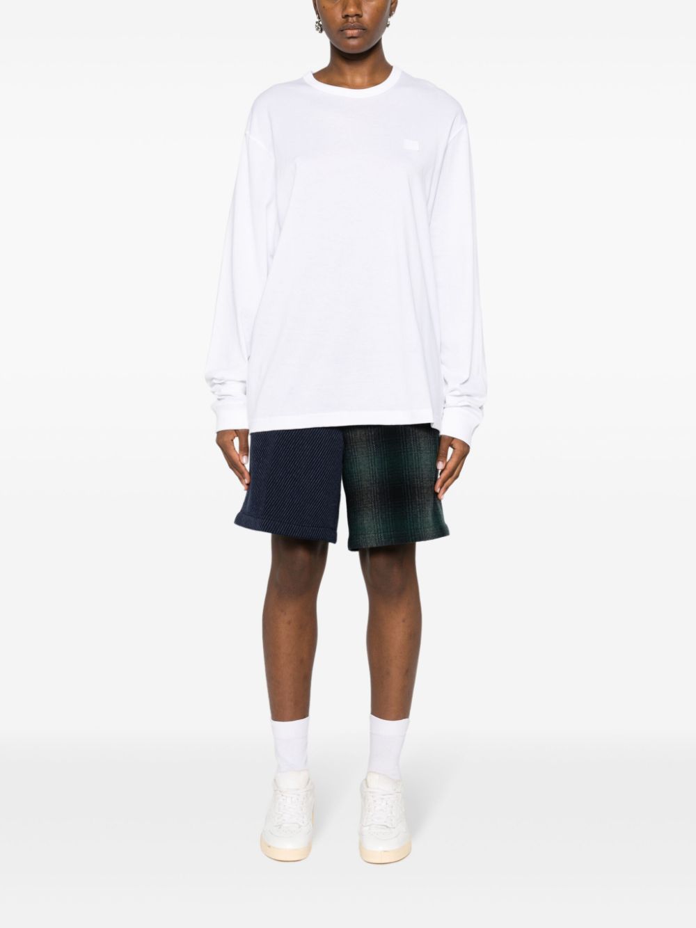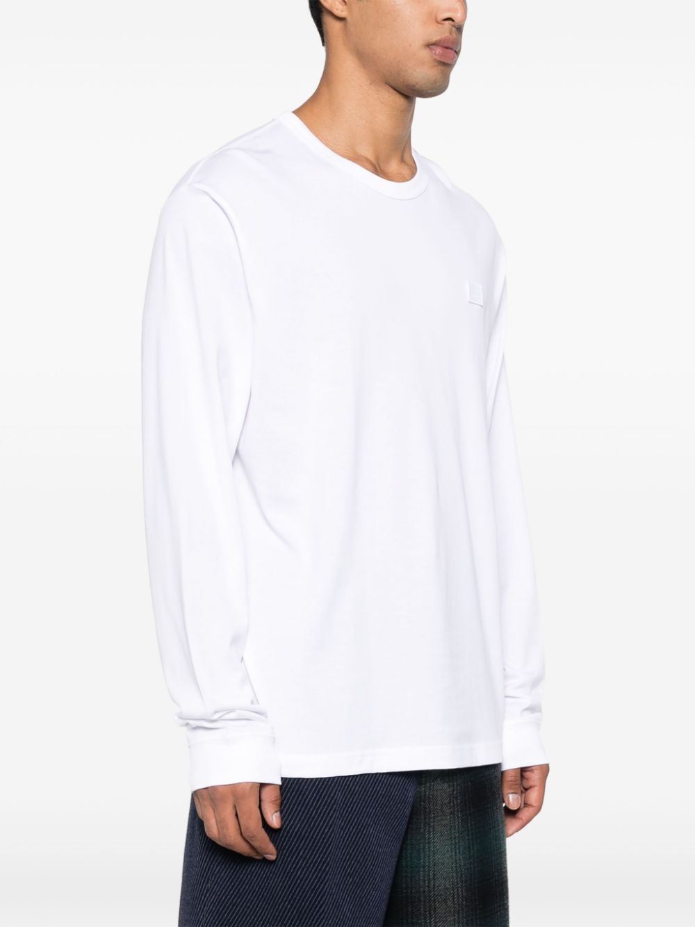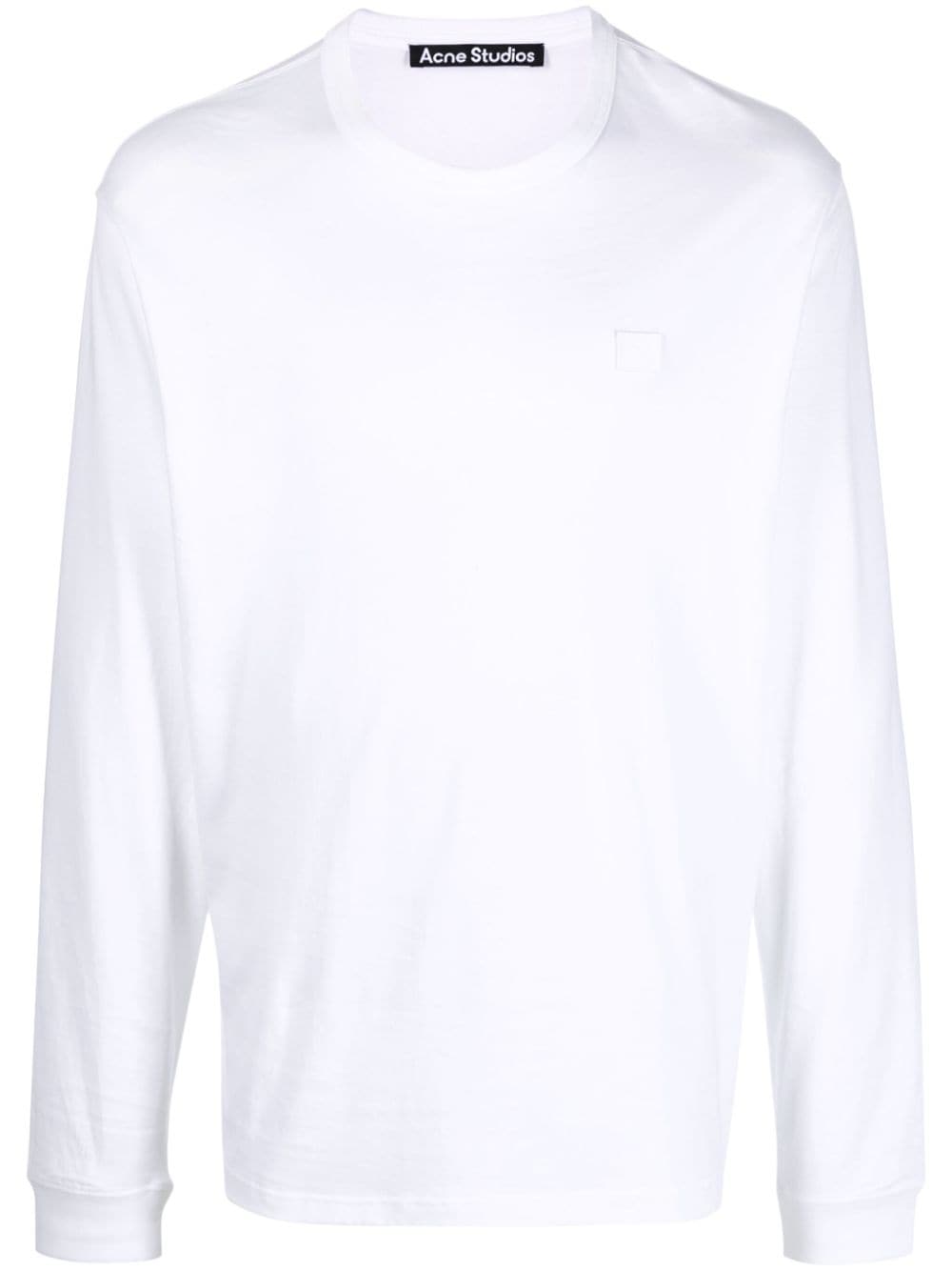 Upgrade your wardrobe with our lightweight, unisex Acne Studios long sleeve t-shirt. Crafted from soft jersey cotton, it features a playful face logo patch on the chest. Perfect for any casual occasion, this shirt offers a regular fit and stylish crew neck.