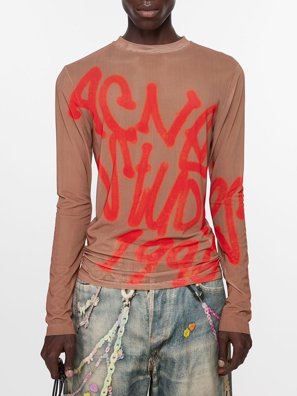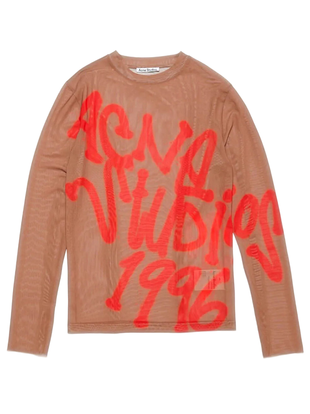 Get ready to stand out with this PRINTED T-SHIRT! Featuring a regular fit and a long-sleeved mesh design, it showcases the iconic Acne Studios 1996 logo with a spray-paint effect. It's the perfect combination of comfort, style, and quirky fun.