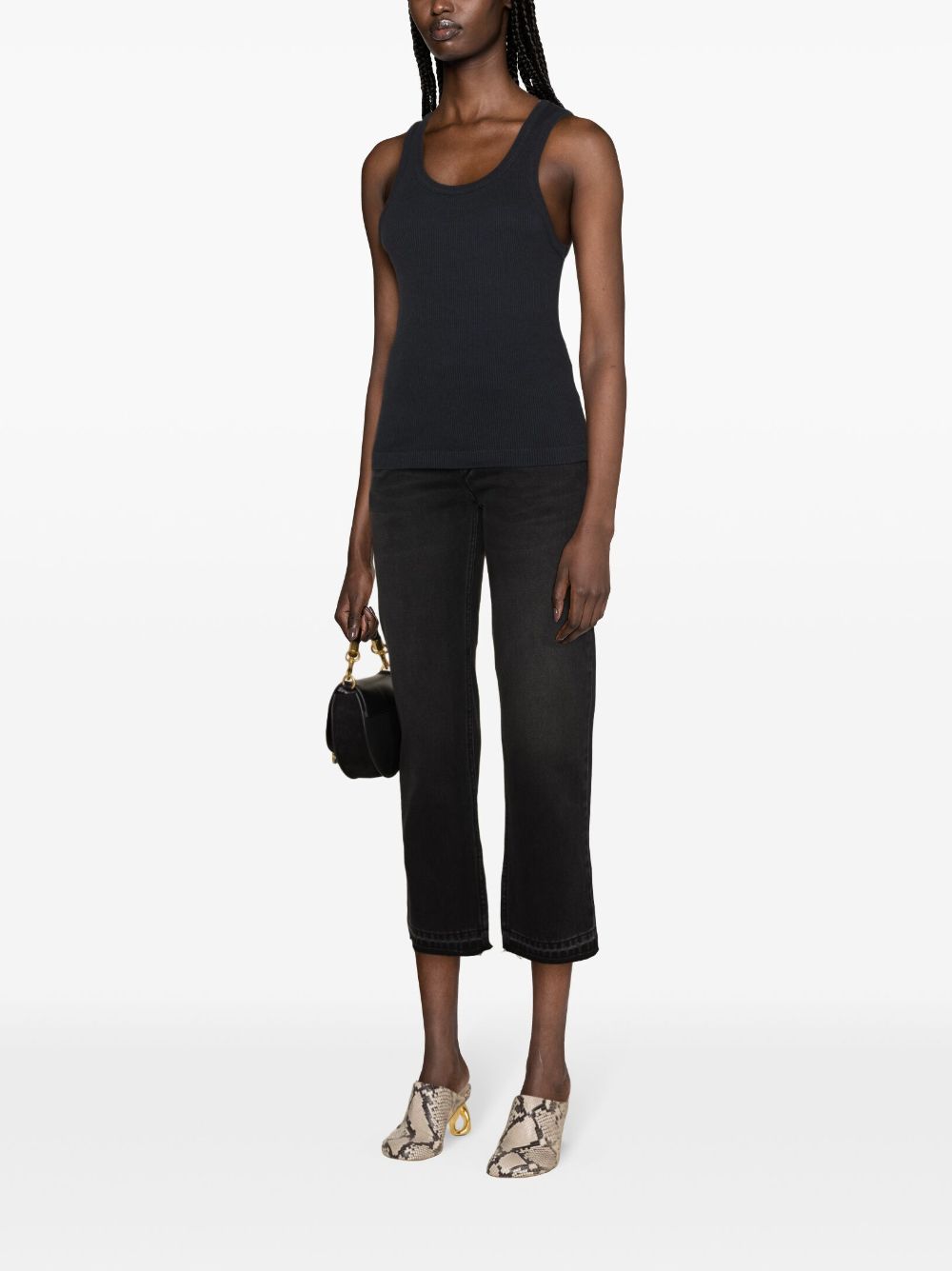 Be effortlessly cool in our Poppy tank top. In classic black and ribbed knit, it's perfect for any occasion. The stretch-design ensures a comfortable fit, while the scoop neck and sleeveless style add a touch of edge. This straight hem tank is a must-have for your wardrobe.