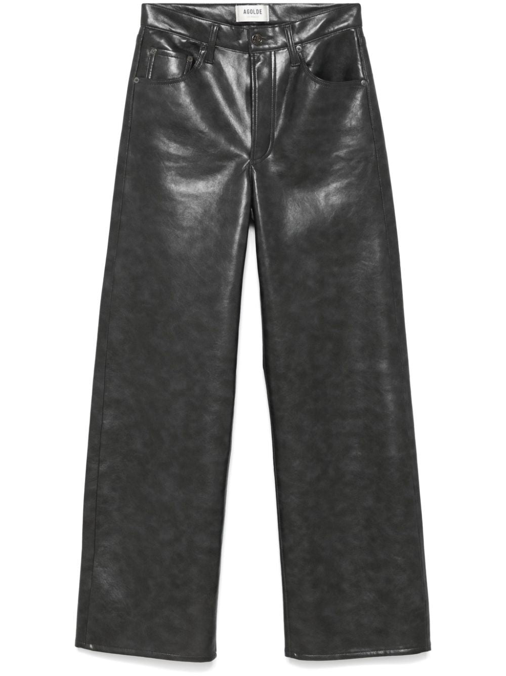 Introducing our slate grey WIDE LEATHER TROUSERS. Made from a recycled leather blend with a smooth grain, these low-waisted trousers will add a touch of edgy style to any outfit. Equipped with a front button and zip fastening, belt loops, and classic five pockets, these straight leg trousers are a must-have for any fashion-forward individual.
