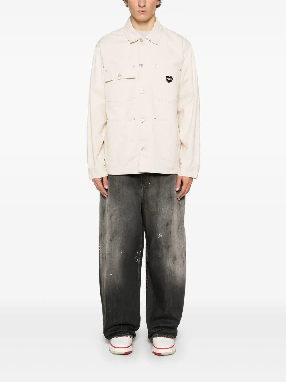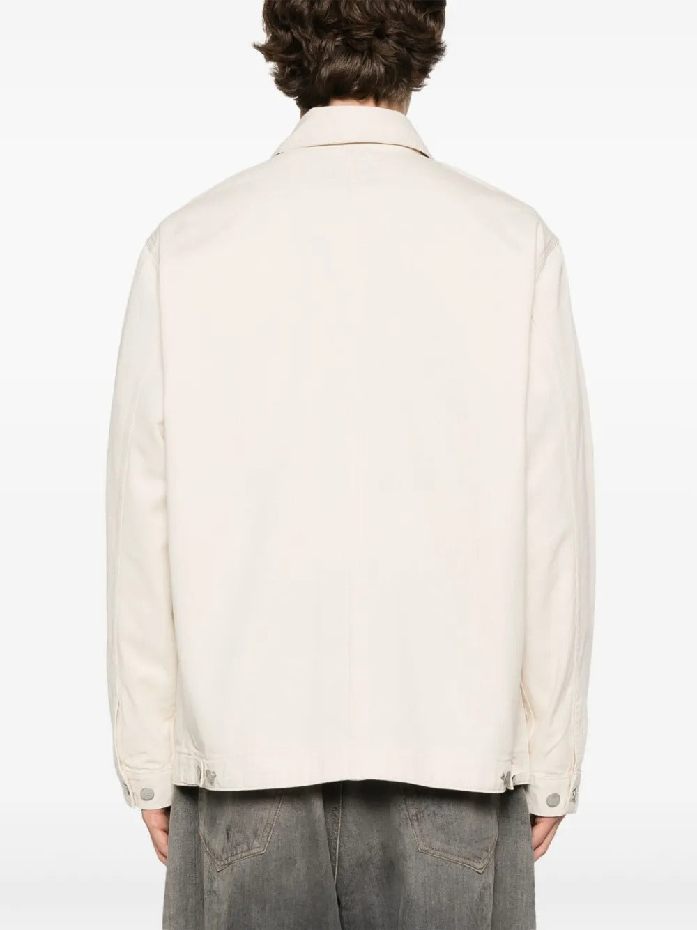 Stay stylish and practical with the Drewe Chore Coat Fountain. This ecru coat features a front button fastening, buttoned cuffs, and three front patch pockets for all your essentials. Plus, adjustable waist tabs for a perfect fit. Upgrade your wardrobe with this versatile and functional coat.