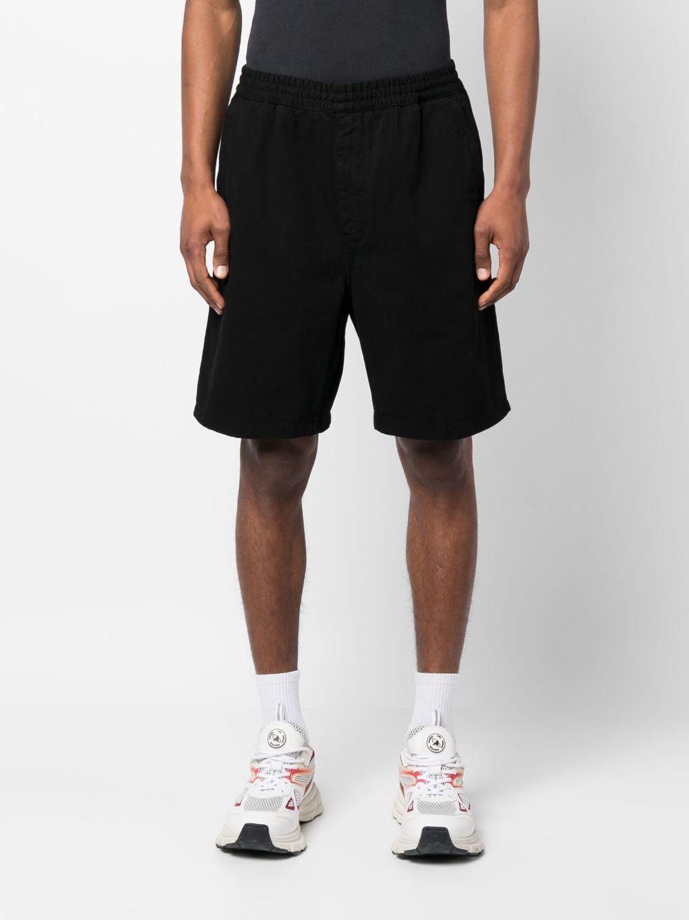 The Flint Shorts Moraga are a playful and practical addition to any wardrobe. Made with black organic cotton and featuring a logo patch on the rear, these shorts have a straight leg and an elasticated waistband for comfort. With two diagonal and two rear patch pockets, plus a side patch pocket, you'll have ample space for all your essentials.