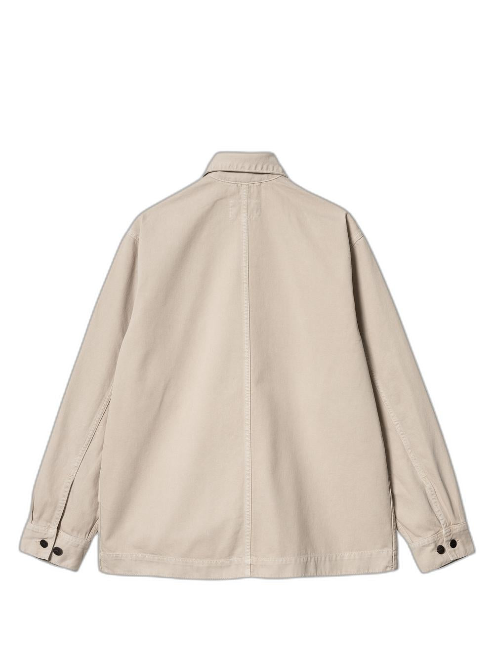Introducing the Garrison jacket Clark - a cotton jacket with a classic collar, button closure, and multiple pockets including one with a logo ferrule. Stay stylish and organized with this beige long sleeve jacket.
