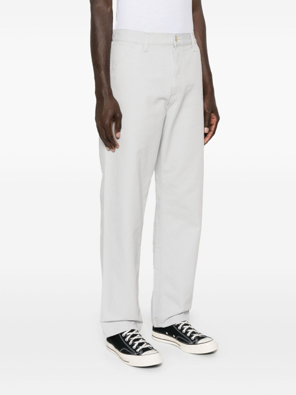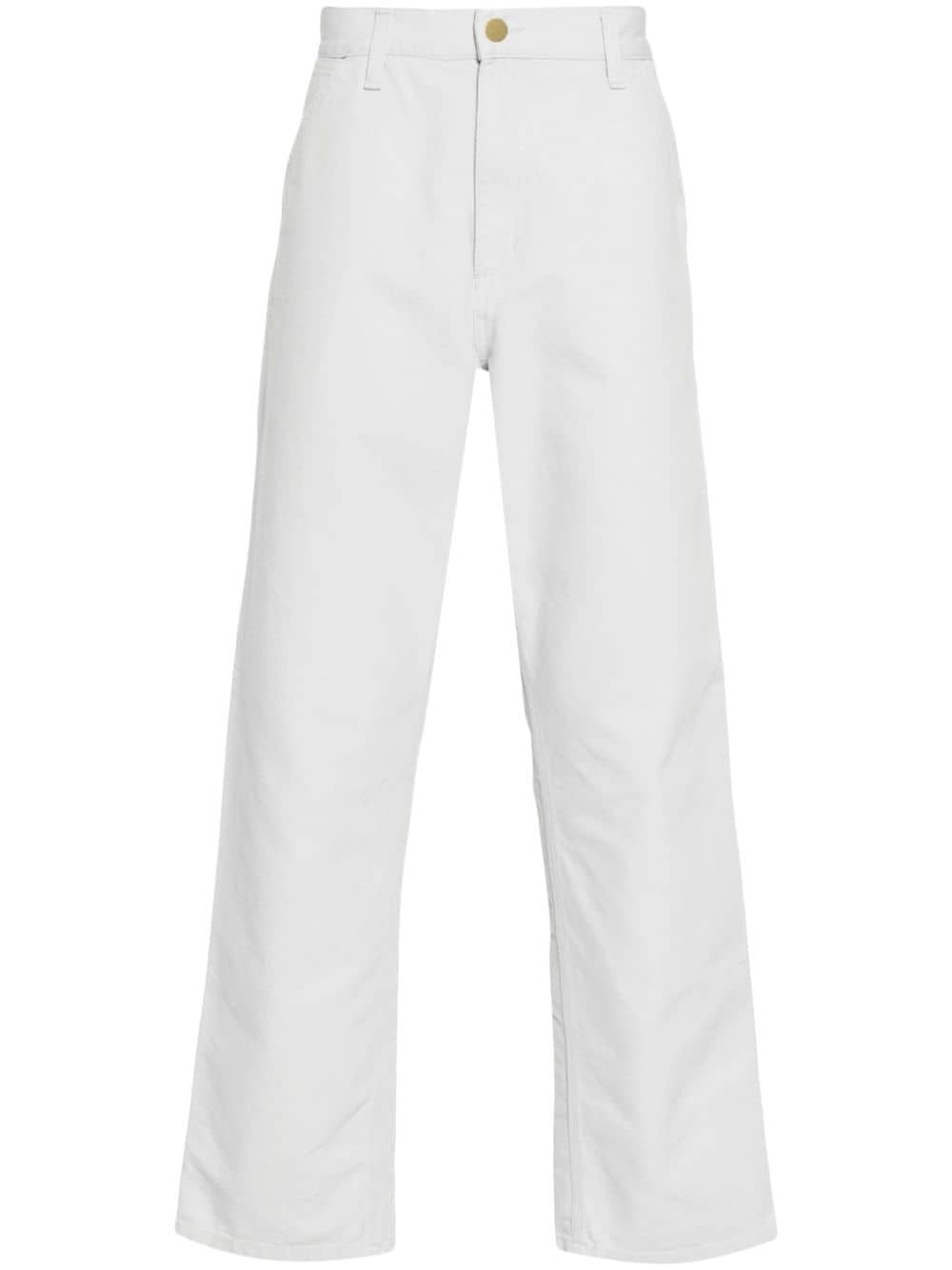 Introducing our Single Knee Pant - the ultimate combination of style and sustainability. Made with 100% organic cotton canvas, this light grey pant features a playful carpenter strap, logo patch, and multiple pockets for all your essentials. Get ready to make a statement with our button fly fastening and straight leg design.