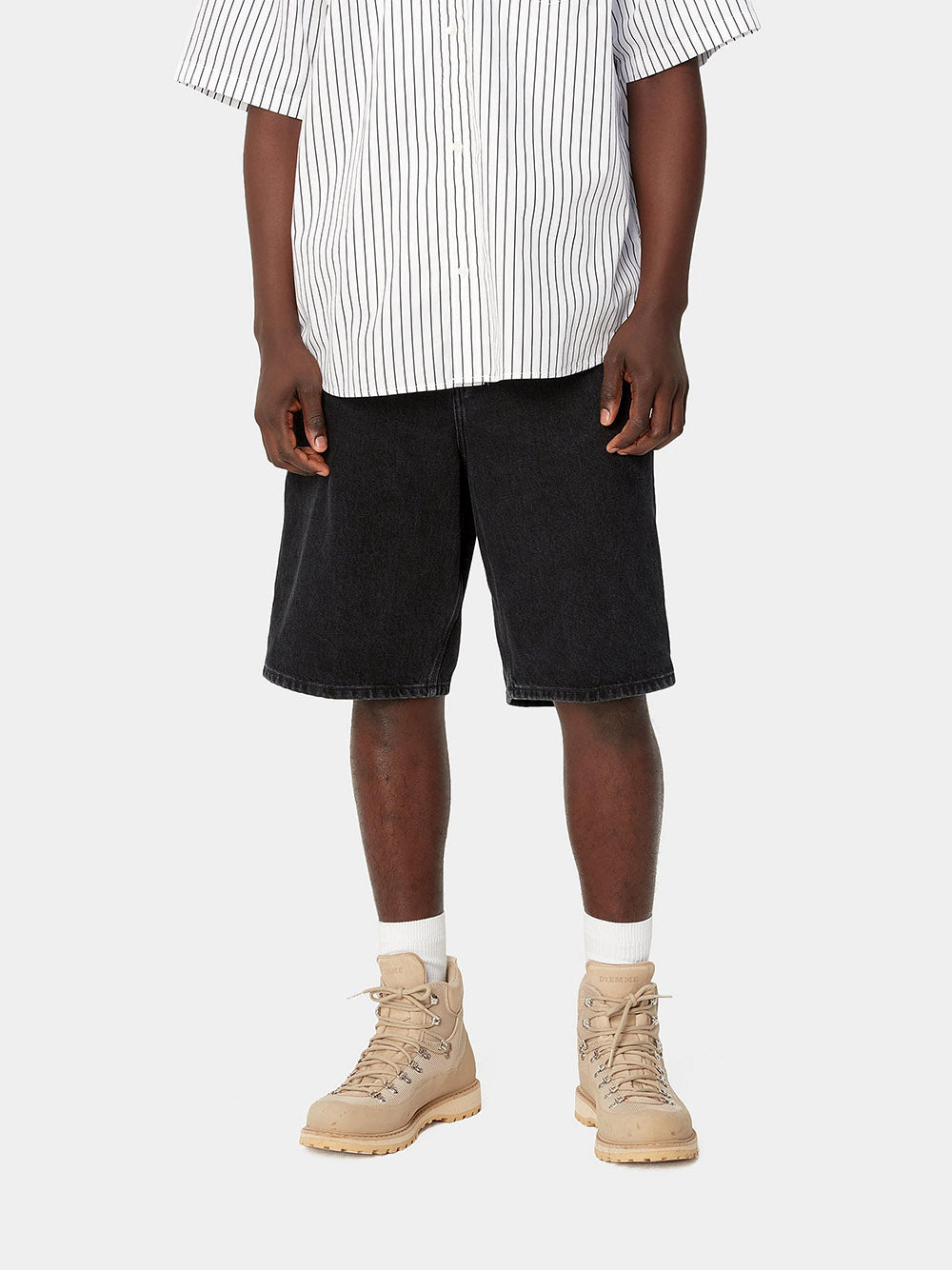 Introducing our Single Knee Short Smith Denim - the perfect balance of style and comfort. Made with black cotton denim, it features a logo patch at the rear, concealed fly and button fastening, and multiple pockets for convenience. Plus, the above-knee length and straight hem add a touch of edge.
