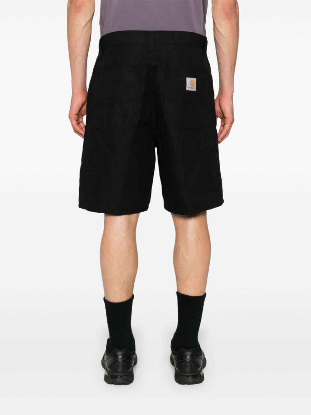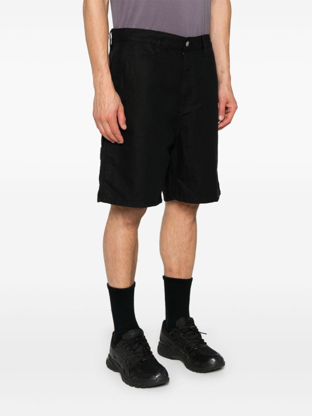 Introducing the Walter Single Knee Short Sullivan. Made with a black cotton-linen blend and interlock weave, these knee-length shorts feature belt loops, diagonal and rear pockets, and a concealed fly and button fastening. Perfect for a casual and stylish look.