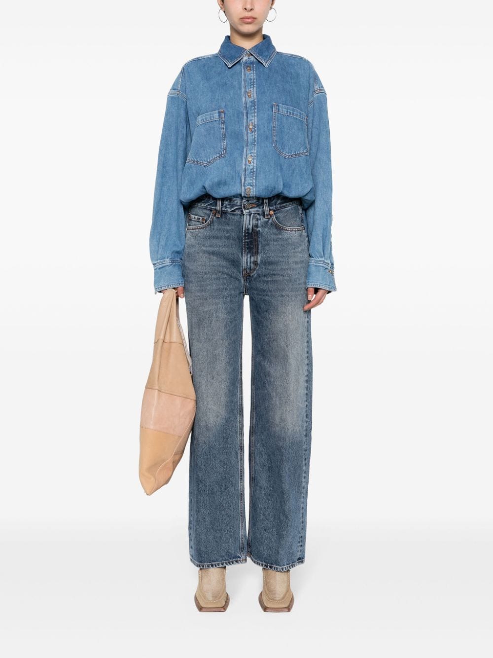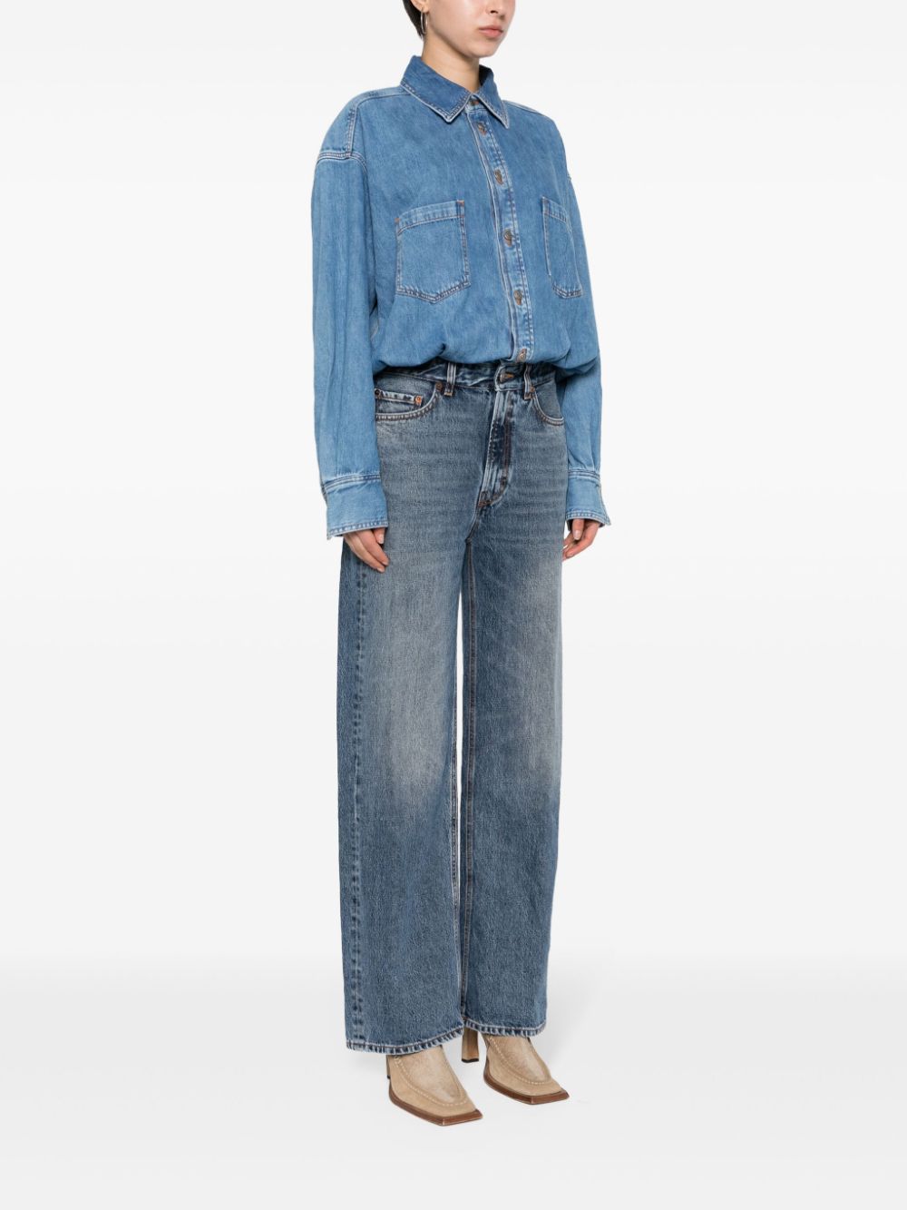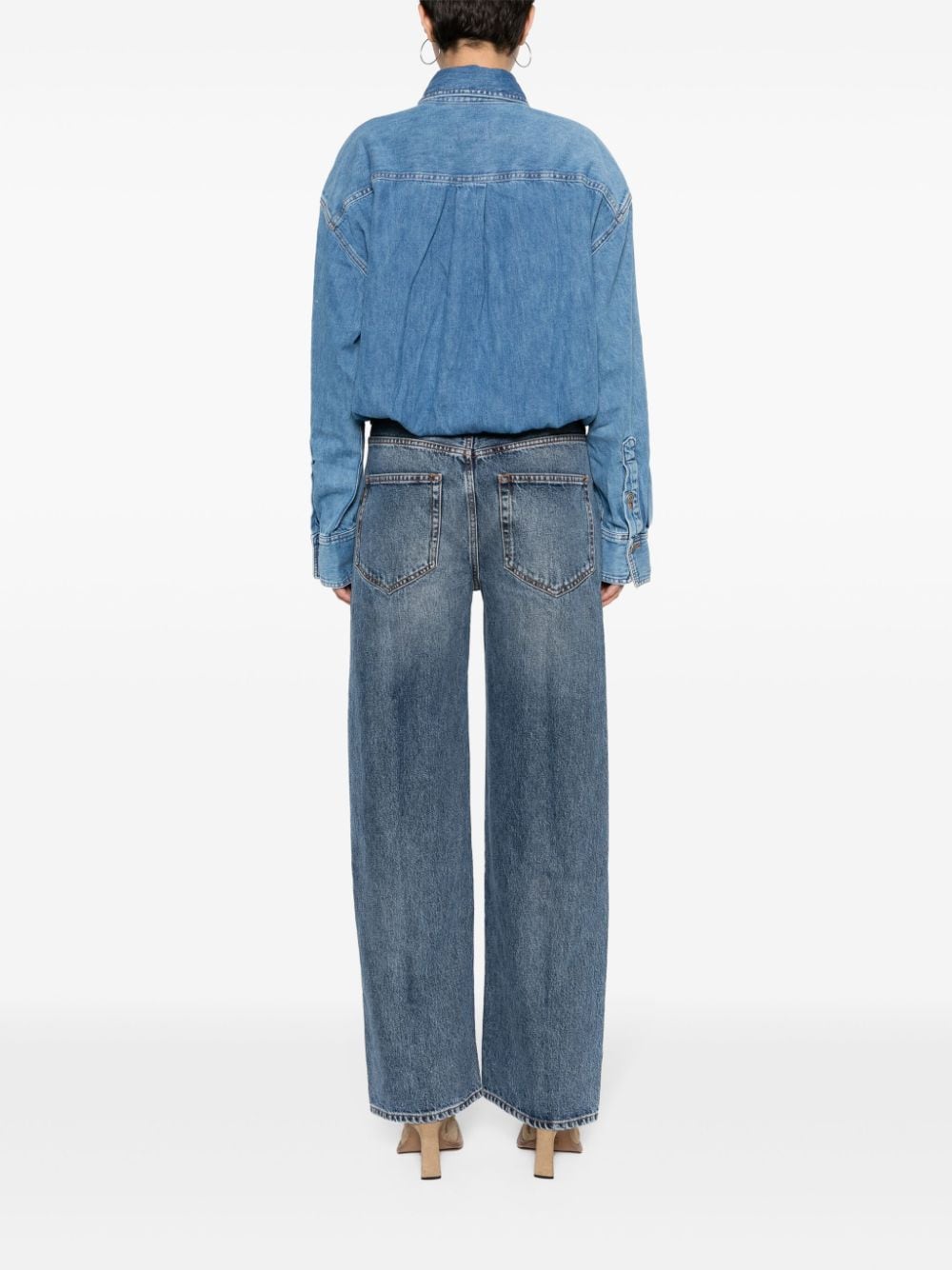 Step into style with this playful denim jumpsuit, featuring a unique panelled design and a trendy blue color. The pointed flat collar and long sleeves with buttoned cuffs add a touch of sophistication, while the classic five-pocket design and waist belt loops offer convenience and a flattering fit.