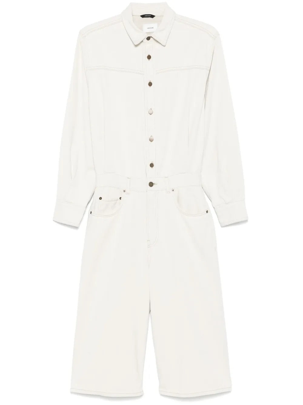 Add some charm to your wardrobe with our Tonya denim jumpsuit. In a versatile almond beige color, this jumpsuit features a front button fastening and concealed fly and button fastening for a sleek look. Perfect for any occasion, you'll love the stylish vibe this jumpsuit brings to your outfit!