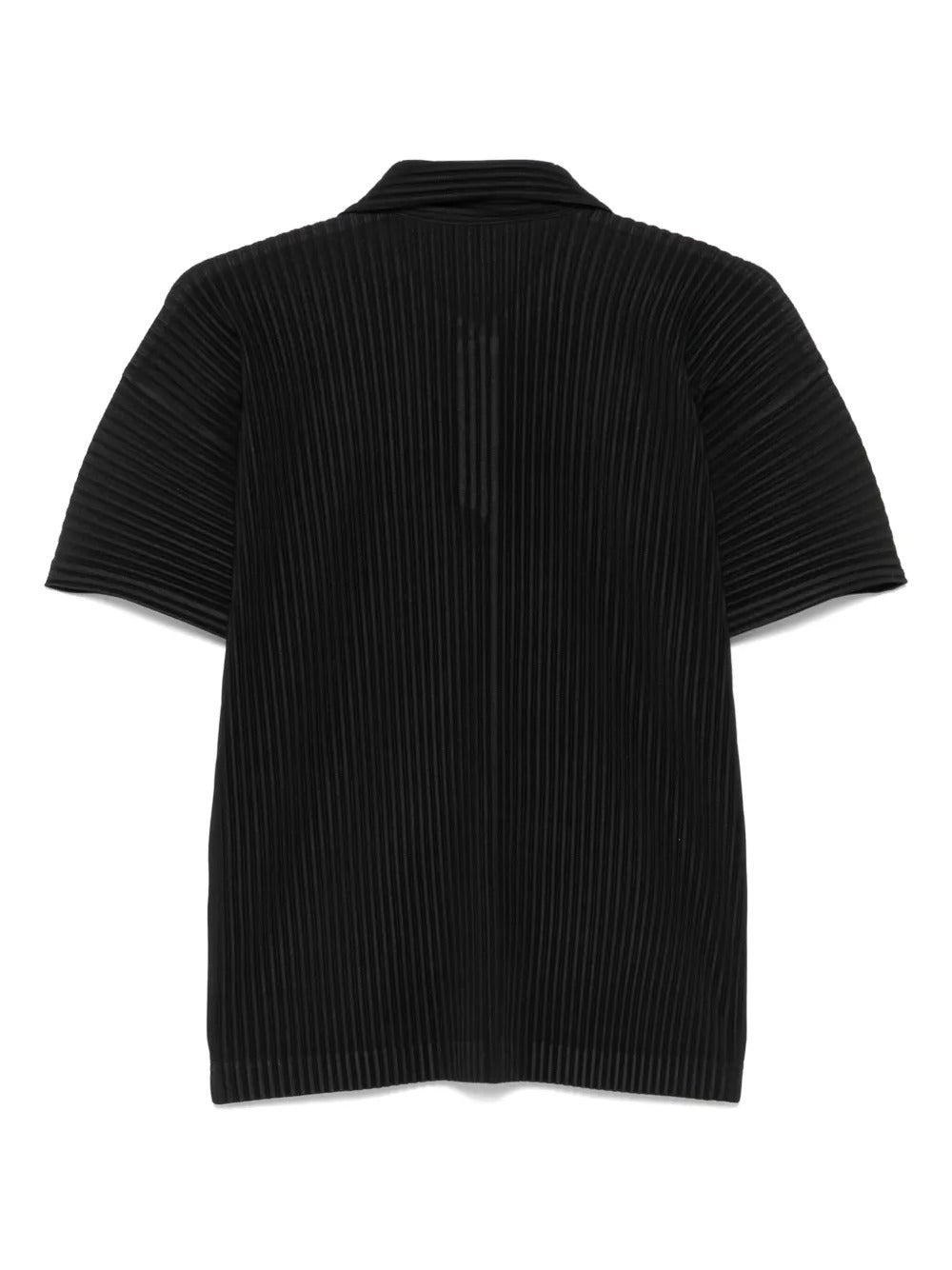 This pleated polo shirt elevates any outfit with its unique split neck design and classic black color. Perfect for any casual occasion, it adds a touch of style and versatility to your wardrobe.