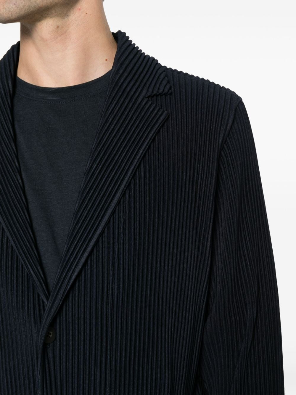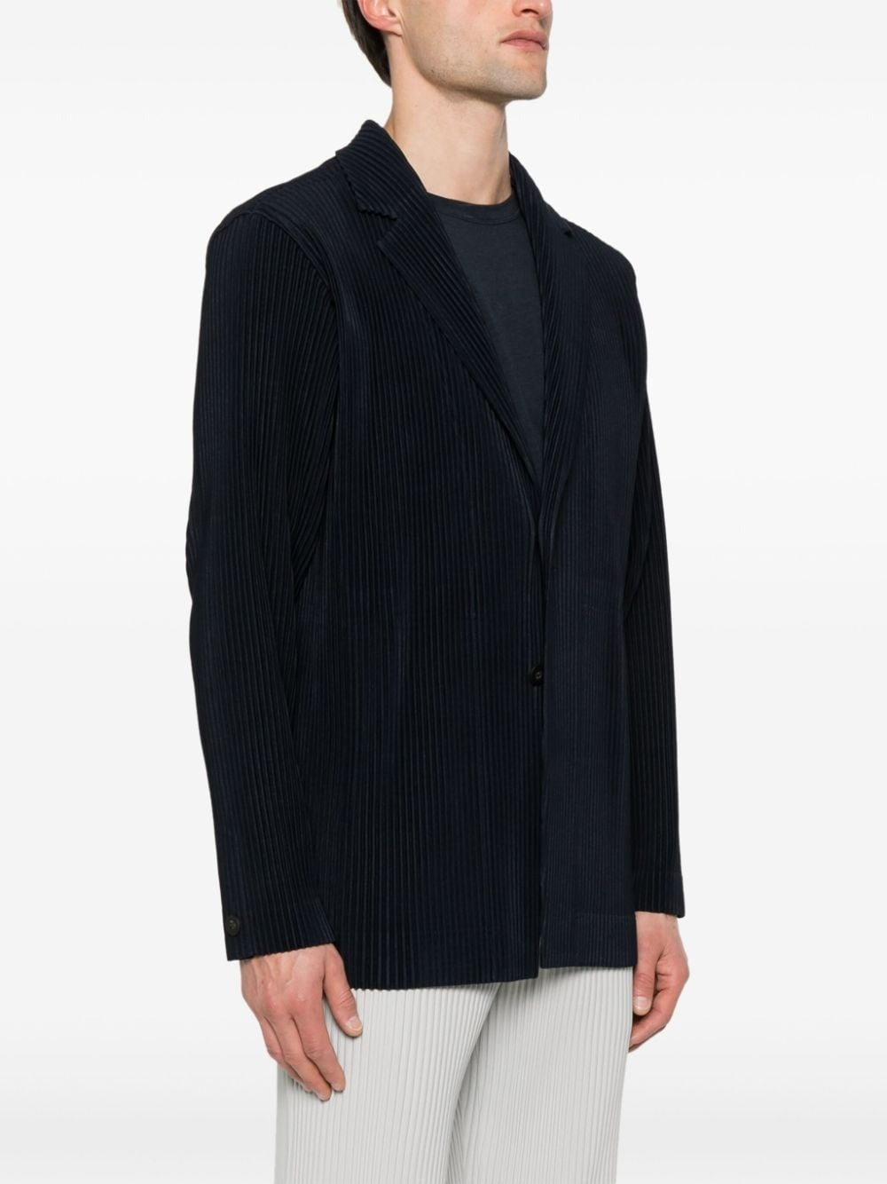 Take your blazer game to the next level with our single-breasted plissé blazer in navy blue. Featuring a unique plissé effect, notched lapels, and buttoned cuffs, this blazer is both stylish and functional. With two side inset pockets and a front button fastening, it's the perfect addition to any wardrobe. Unlined for ultimate comfort and a straight hem for a sleek finish. Elevate your style with this must-have blazer.