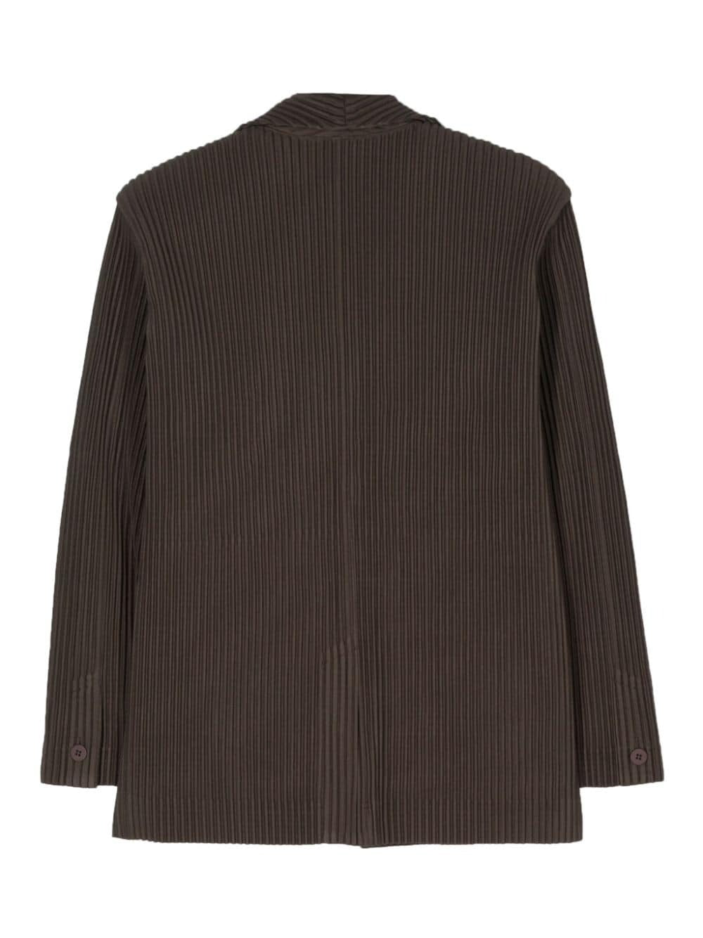 Upgrade your wardrobe with TAILORED PLEATS 1, featuring a stylish cedar brown color. The fully pleated design and notched lapels add a touch of sophistication to any outfit. Long sleeves and buttoned cuffs provide versatility, while the two side slash pockets offer convenience. Complete with a straight hem and front button fastening for a polished look.