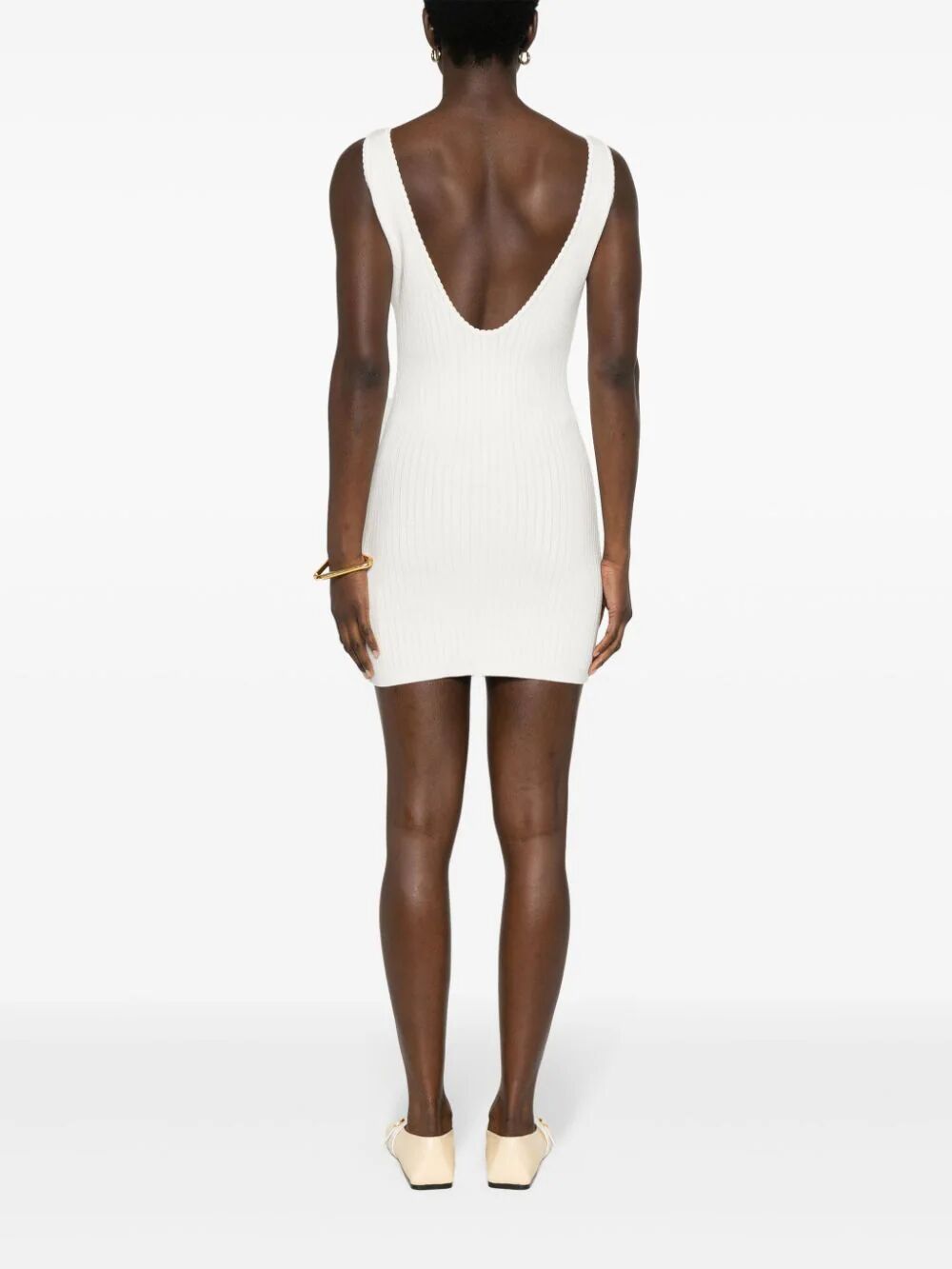 Introducing LA MINI ROBE SIERRA: a white ribbed dress that hugs your curves and shows off just the right amount of skin with its cut-out detail. The stretchy design and sleeveless style make it versatile for any occasion. Complete with a gold logo plaque and thigh-grazing length.