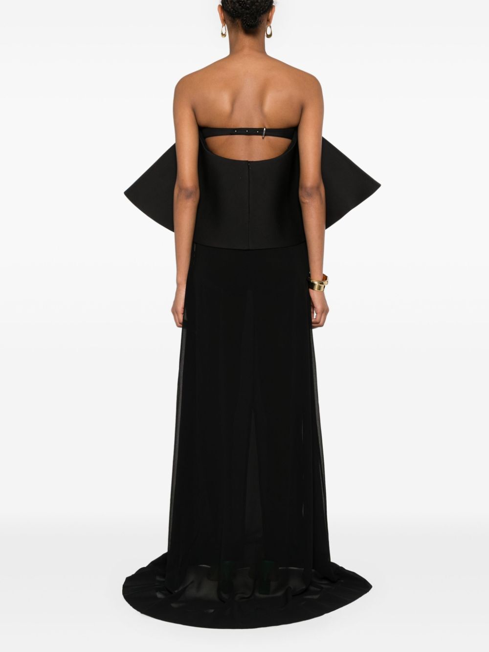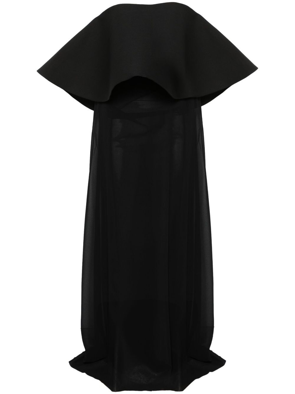 Meet LA ROBE VELA, the perfect blend of style and comfort. Made with premium virgin wool, its semi-transparent design adds an alluring touch. The hidden zip and buckle back closure ensure a flattering fit while the peplum design and full lining provide a sleek silhouette. A must-have for any fashion-forward individual! Available in black.