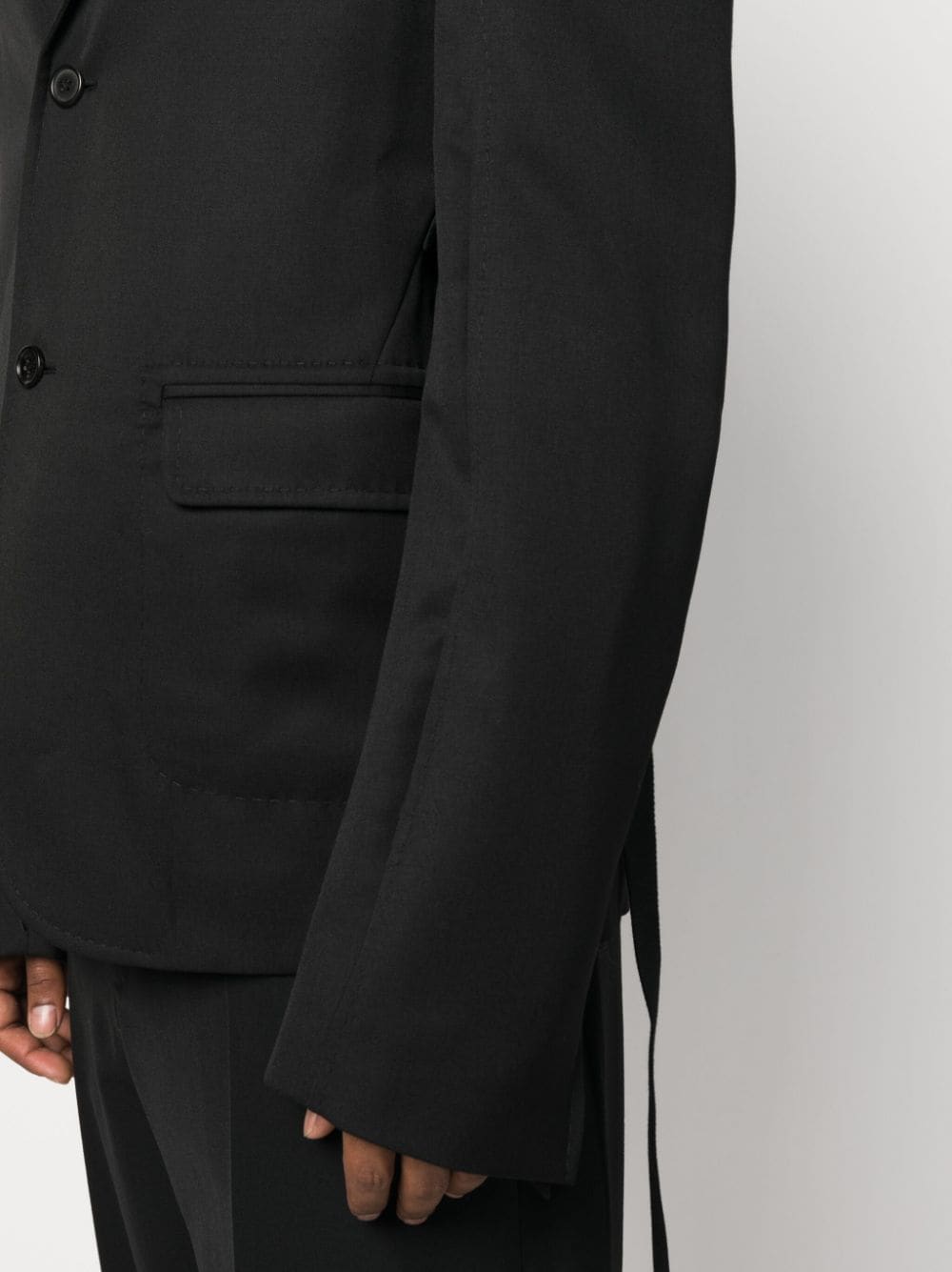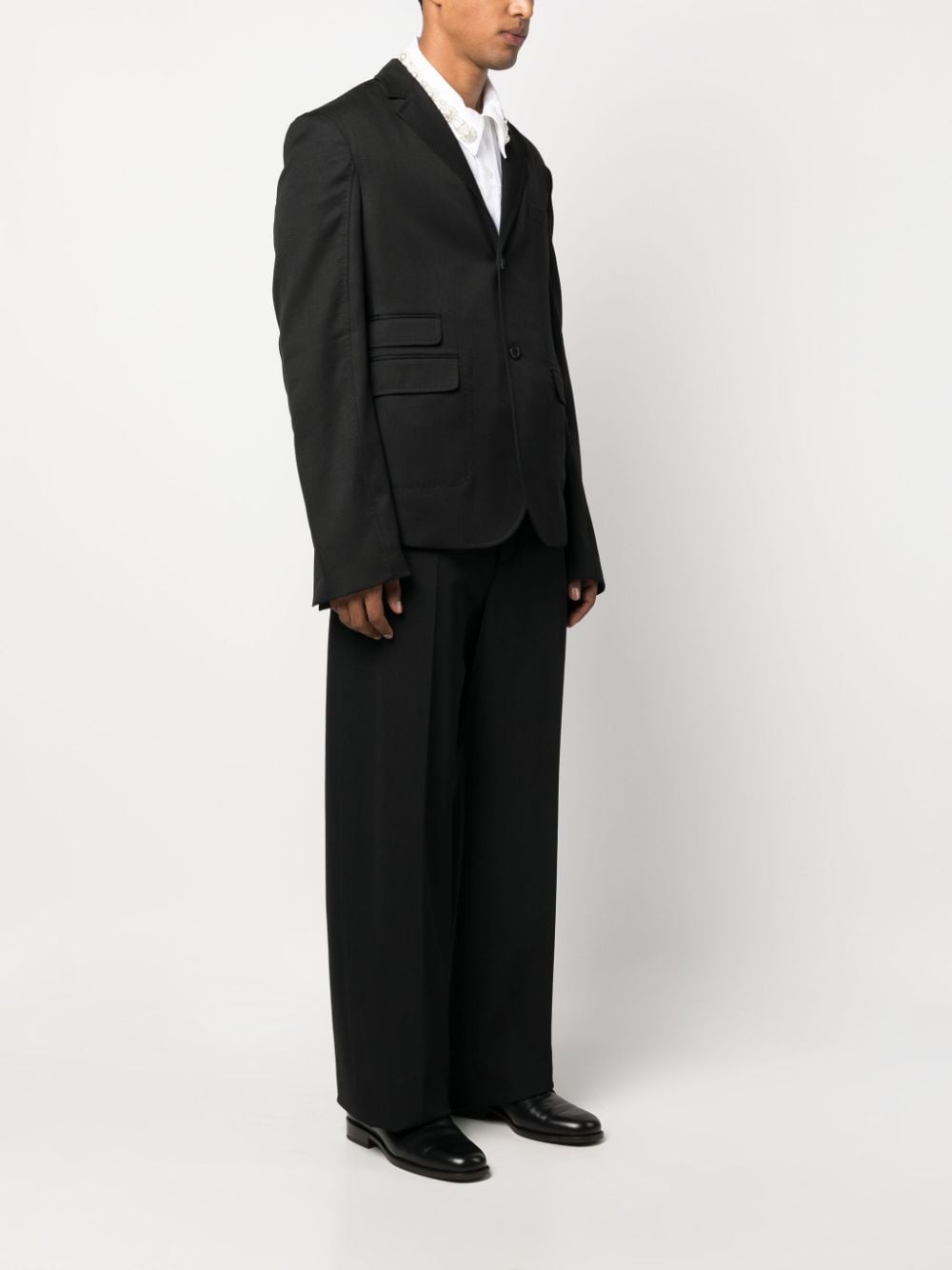 Be effortlessly stylish with LA VESTE PICCINNI. This slim fit blazer, made from premium wool, features contrasting stitching and a notched collar. Complete with regular shoulder details and a single button closure, it also has a pocket square holder and 3 flap pockets for all your essentials. Upgrade your casual style effortlessly. Avalable in black.