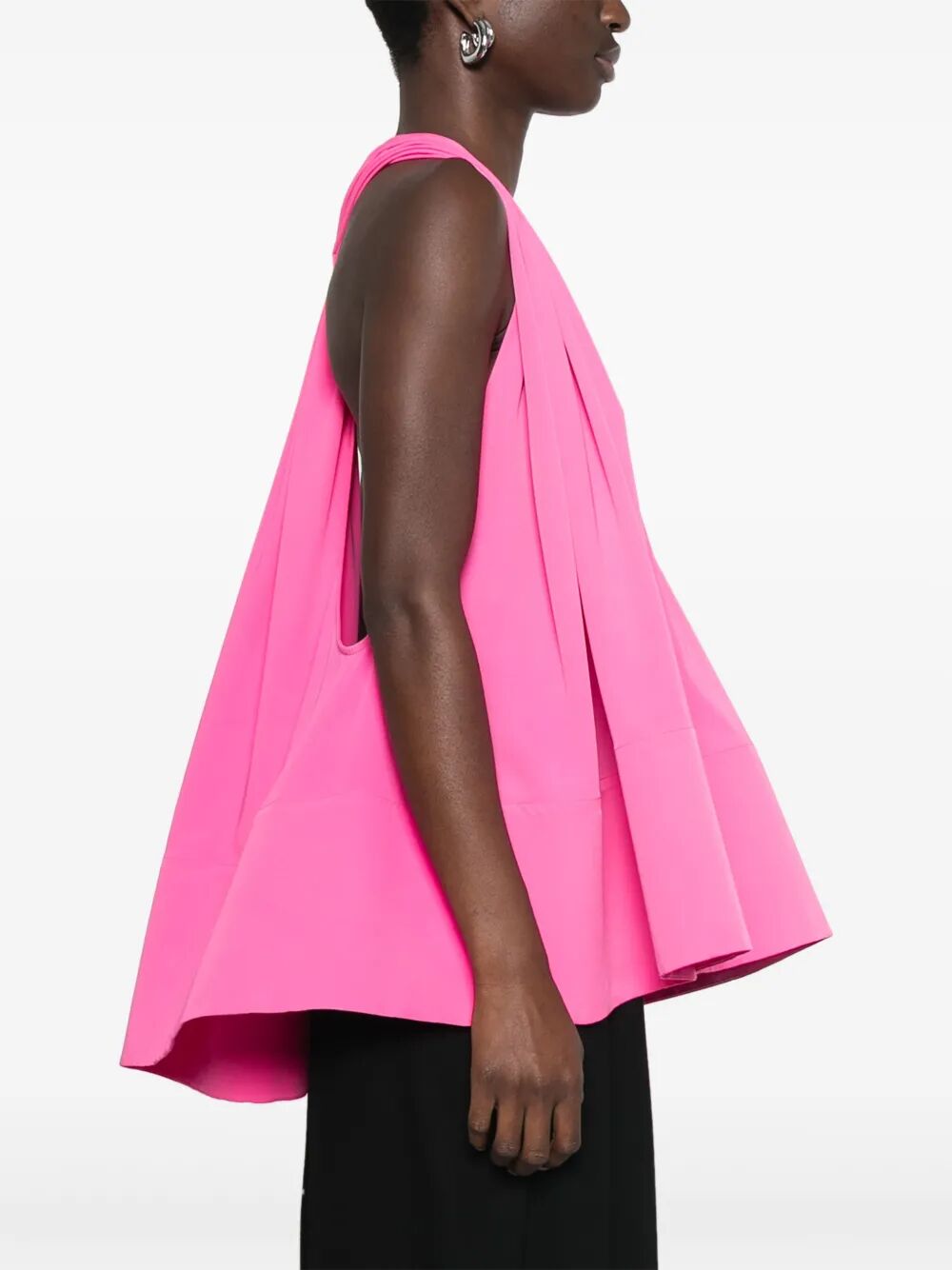 Add a pop of color to your wardrobe with the Le Haute Norma top in fuchsia pink. The V-neck and racerback details give it a playful and modern twist, perfect for those sunny summer days. Stay cool and stylish with this sleeveless top.