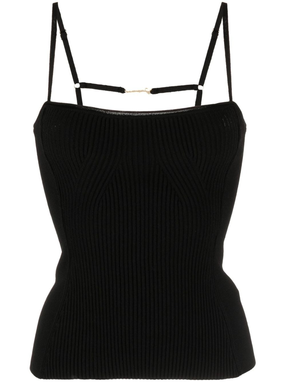 Elevate your basic style with LE HAUT SIERRA. Featuring a straight neckline, thin straps, and sleeveless design, this viscose top offers a simplistic yet chic look. Finished with a straight hem and solid black color, you'll love the versatile and comfortable wear.
