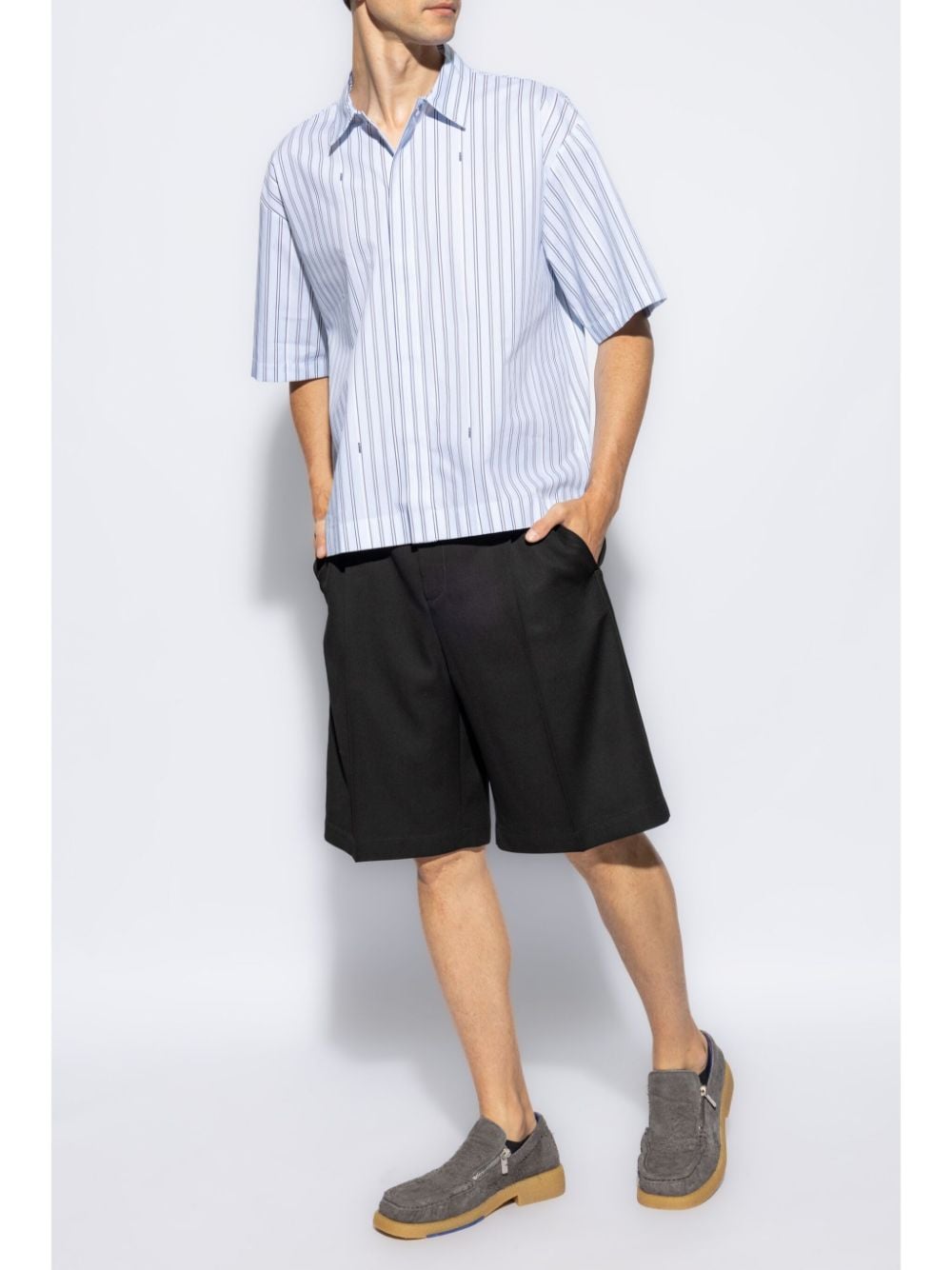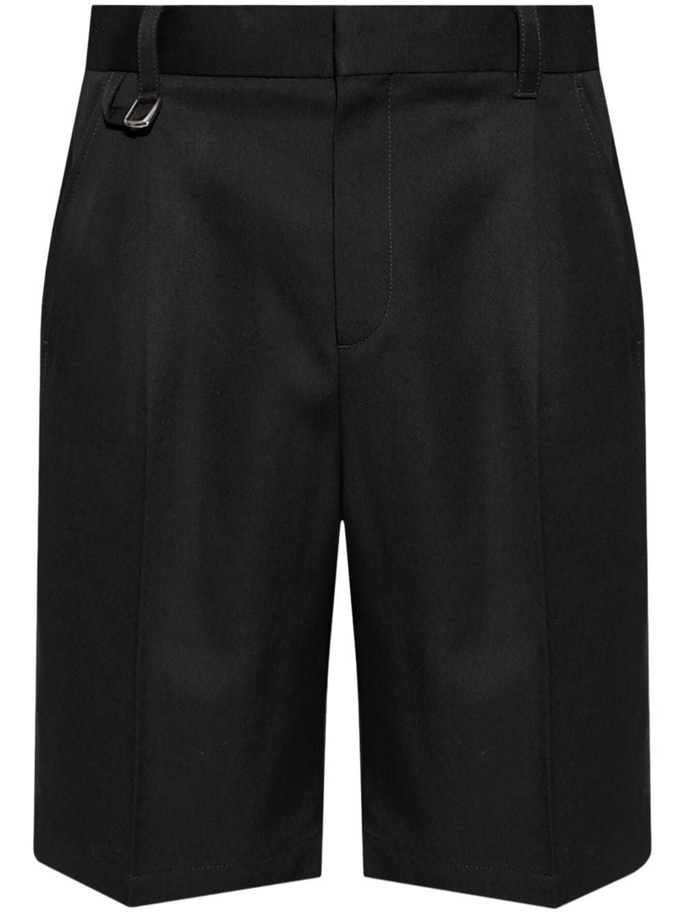 Upgrade your summer wardrobe with LE SHORT MELO. Made from high-quality wool, these shorts feature a medium-rise waist with belt loops, a hidden zipper and button closure, side and back pockets, and crisp pleats for a wide and comfortable fit. Available in classic black.