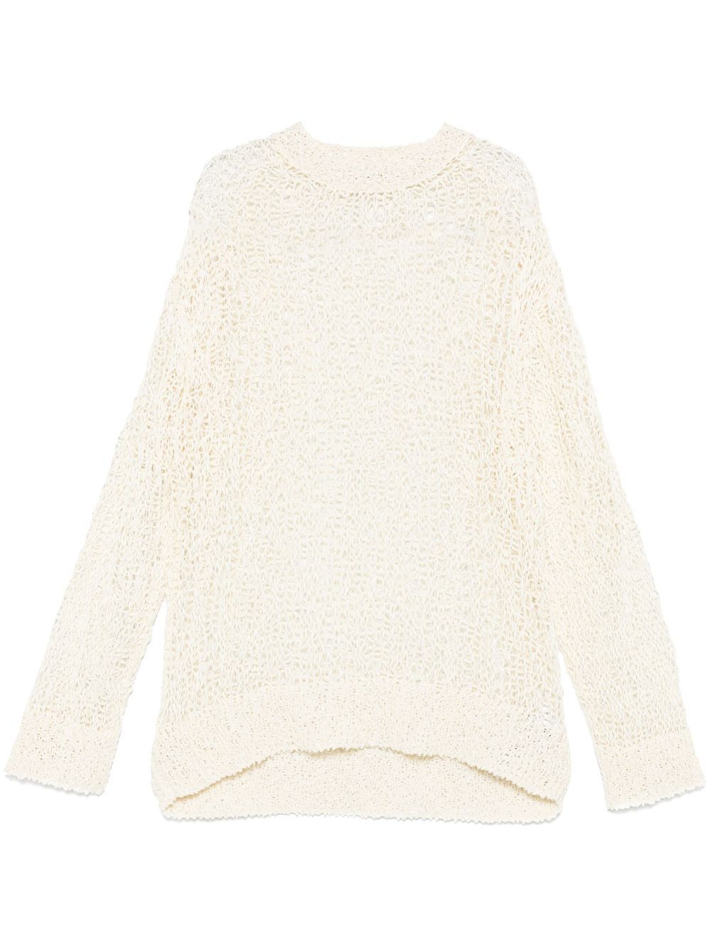 Stay stylish and cozy in our white knitted jumper! Made with soft, knitted fabric and featuring an open needle-work design, this white sweater has a relaxed fit, dropped shoulders, and a round neck. The ribbed hem and cuffs add a touch of texture. Perfect for any casual day!