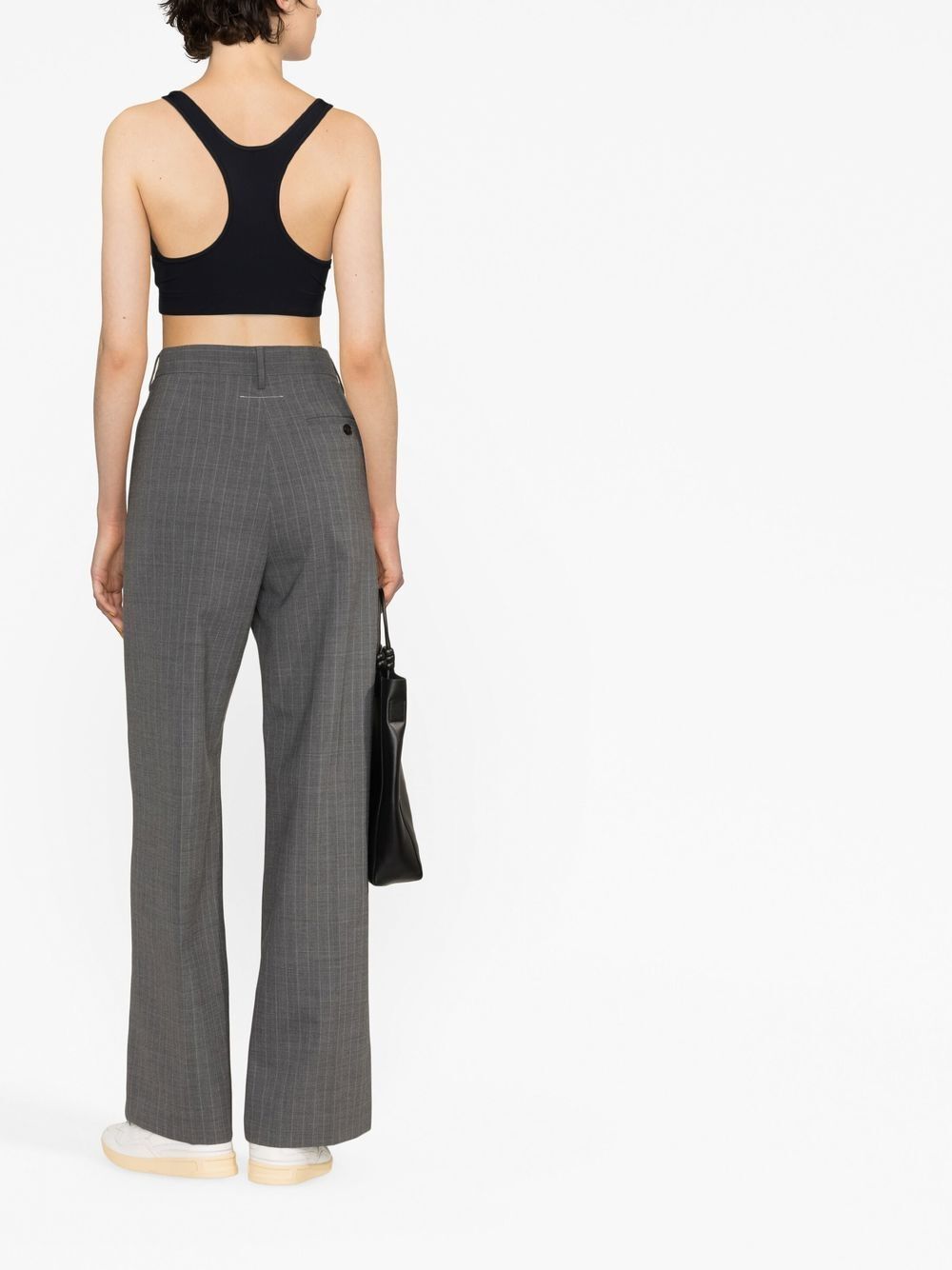 Stay stylish and comfortable during your workouts with this top. This sporty bra by Jil Sander features a stretchy design, front logo print, wide neckline, and sleeveless crop top style. In classic black, it's perfect for any exercise routine.