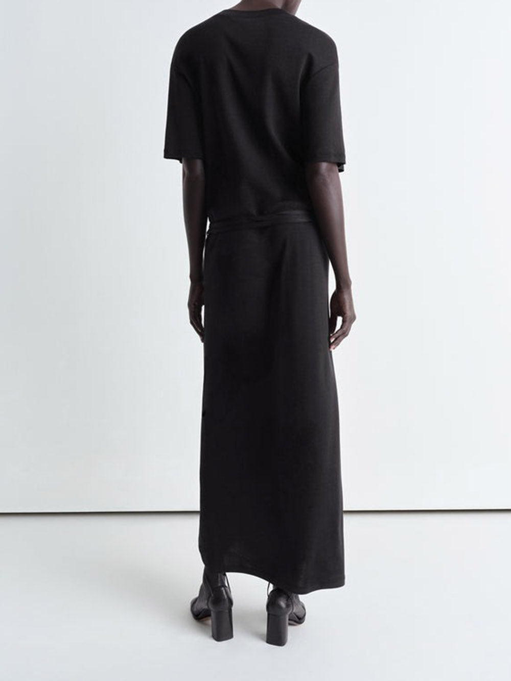 Introducing the BELTED RIB T-SHIRT DRESS, a stylish and comfortable addition to your wardrobe. Made of a textured mid-weight cotton jersey, this dress features a loose, ankle-length shape and a flattering open round neck. Details like the ribbed collar and removable belt make it a must-have for any fashion-forward individual. Available in dark blue.