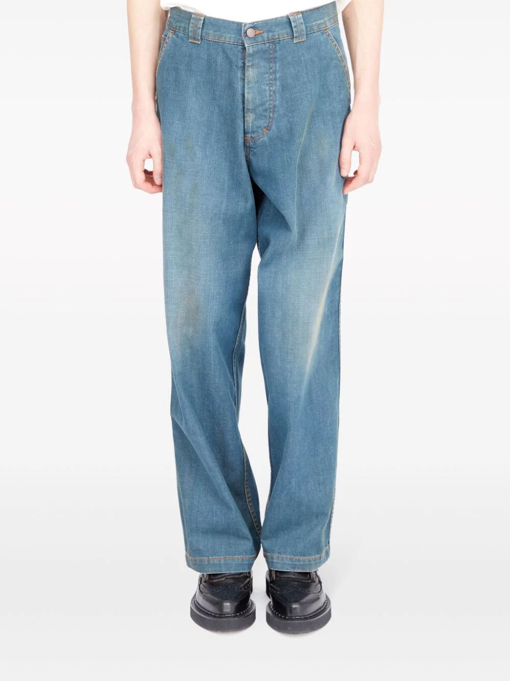 Upgrade your denim game with these 5 pocket trousers. In a trendy mid-wash blue, they feature a mid-rise fit and wide leg, offering both style and comfort. Complete with belt loops, a concealed fly and button fastening, and classic five pocket design. Perfect for any casual look.
