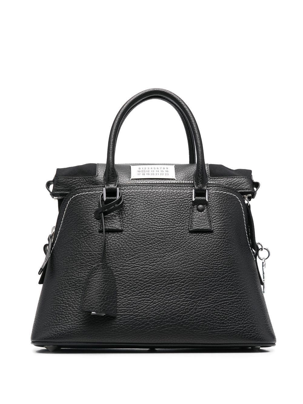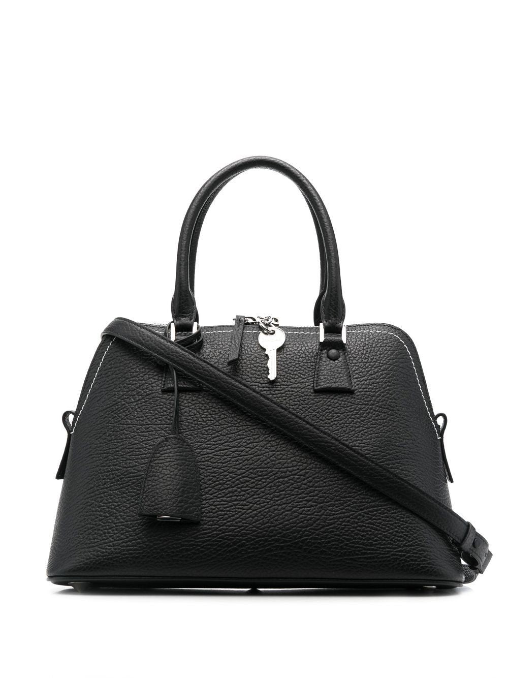 This 5AC leather shoulder bag is the perfect mix of style and functionality. The bold black color is accented by a signature numbers motif and key charm, while the adjustable shoulder strap and metal feet add practicality. With a spacious main compartment and top zip fastening, it's perfect for everyday use.
