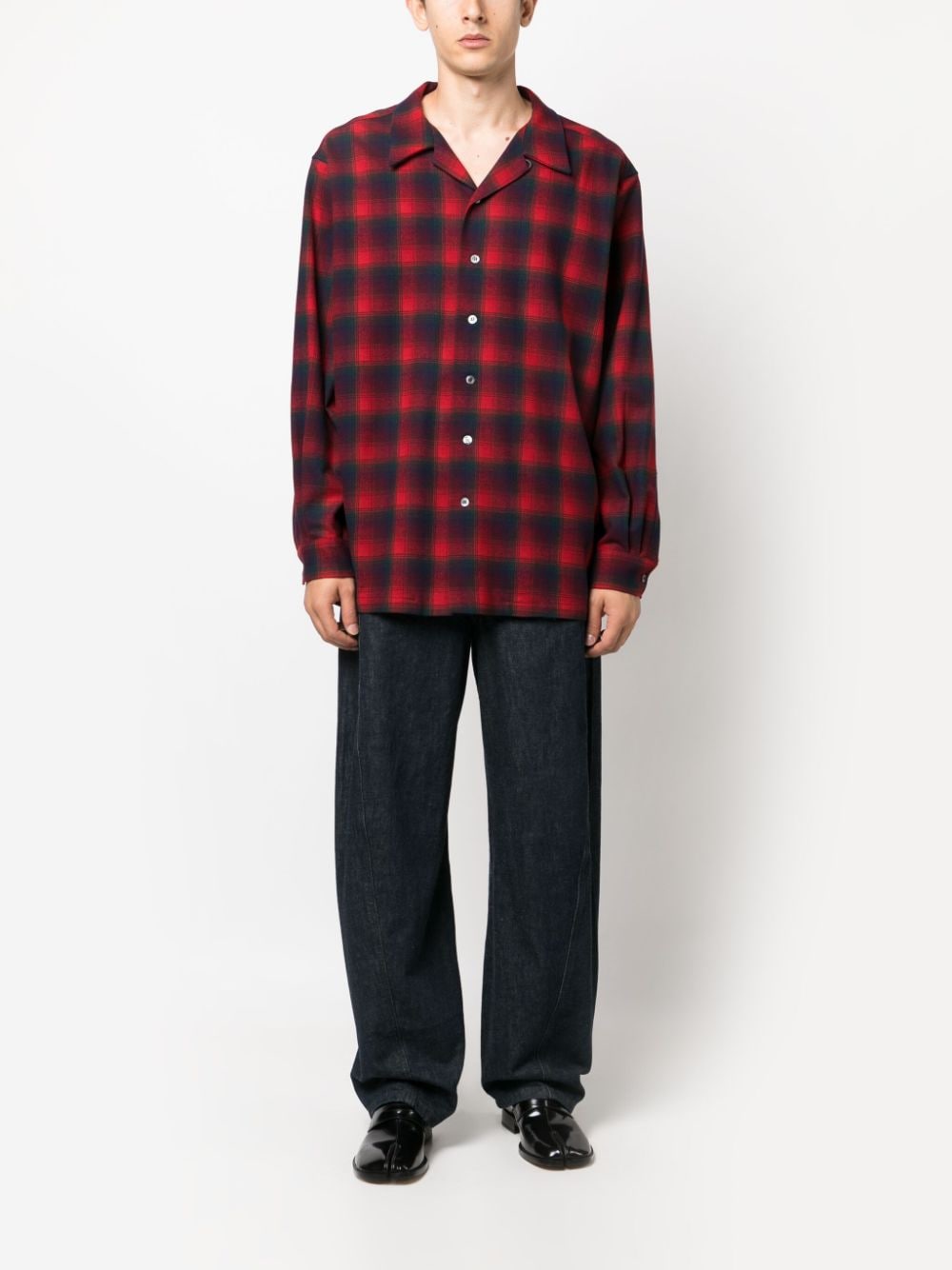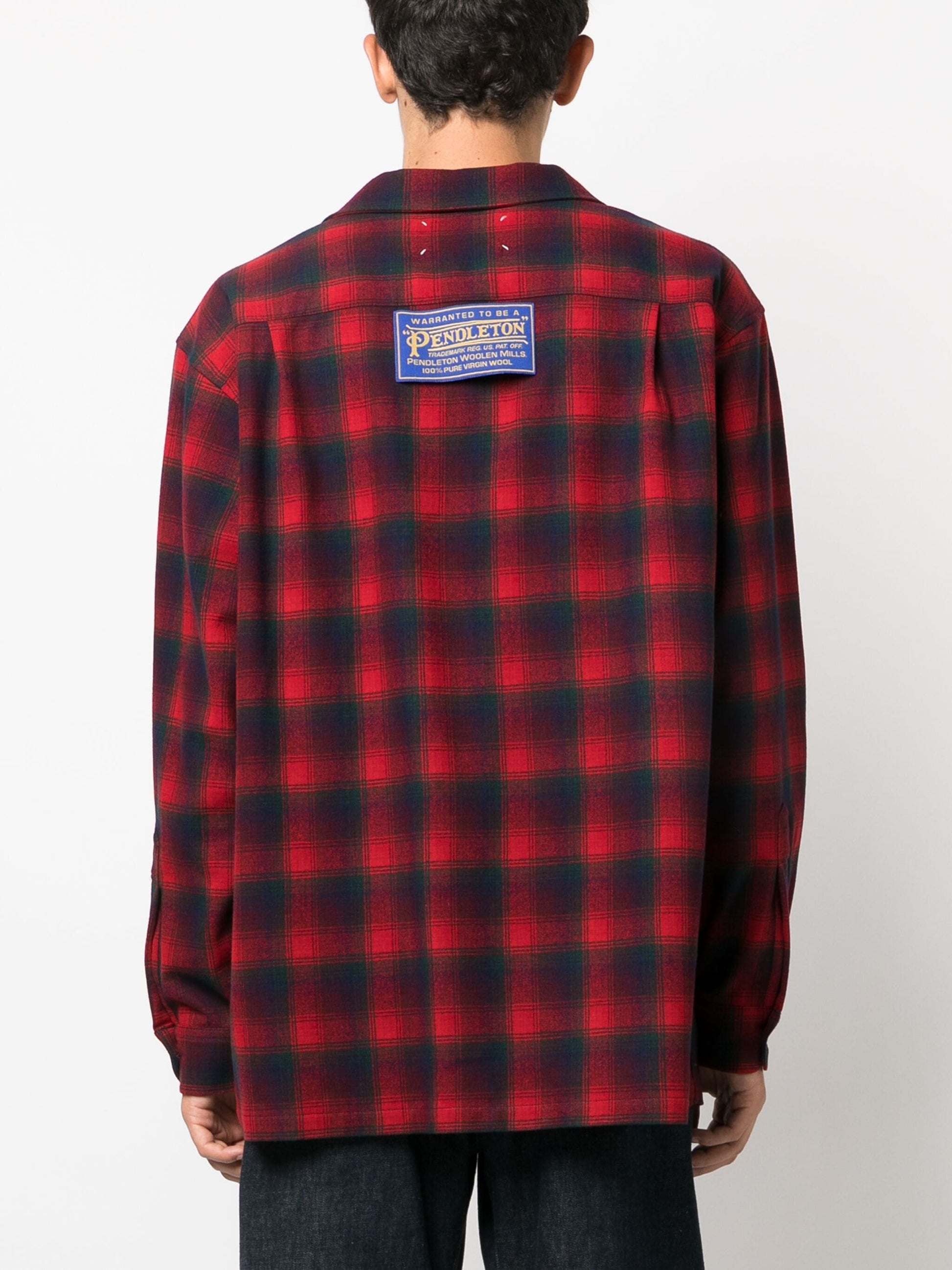 The signature checked wool shirt in red/black is the perfect blend of style and comfort. Made from high-quality wool, it features a unique check pattern and our iconic four-stitch logo. The spread collar, mother-of-pearl buttons, and front button fastening add a touch of sophistication. Embrace your playful side with this versatile and trendy shirt.