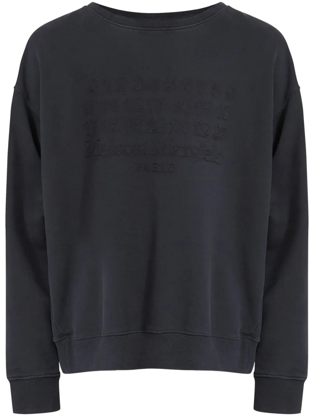 Stay stylish and cozy in this black cotton sweatshirt with a round neck and long sleeves. The signature numbers motif adds a playful touch to this classic piece, while the ribbed cuffs and hem provide a comfortable fit. Perfect for your everyday look!