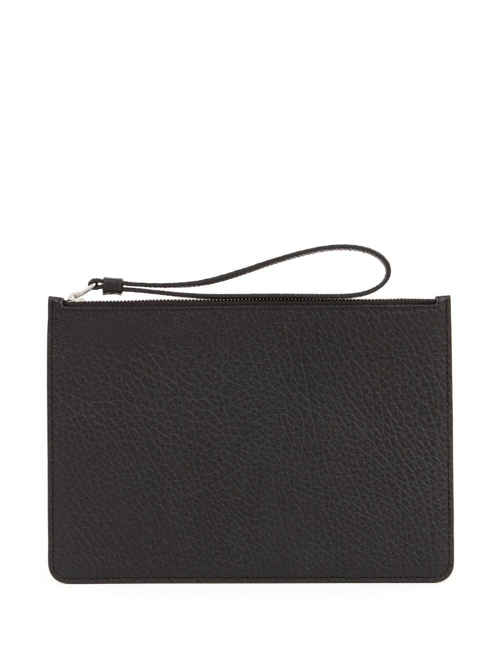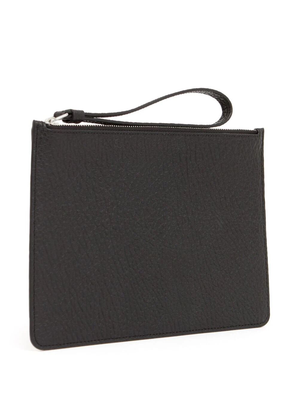 Rock any outfit with our POUCH SMALL in black pebbled calf leather. Featuring our signature four-stitch logo and top zip fastening, this versatile accessory adds a touch of sophistication and style. Carry it by the single flat side handle for a chic look. Compact yet spacious, it's perfect for your essentials.