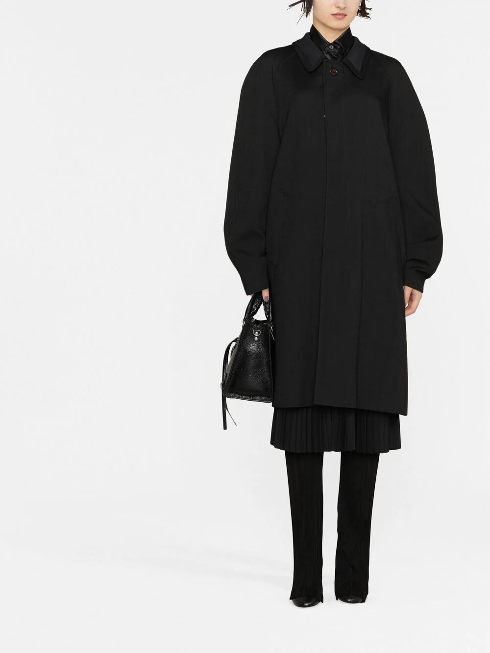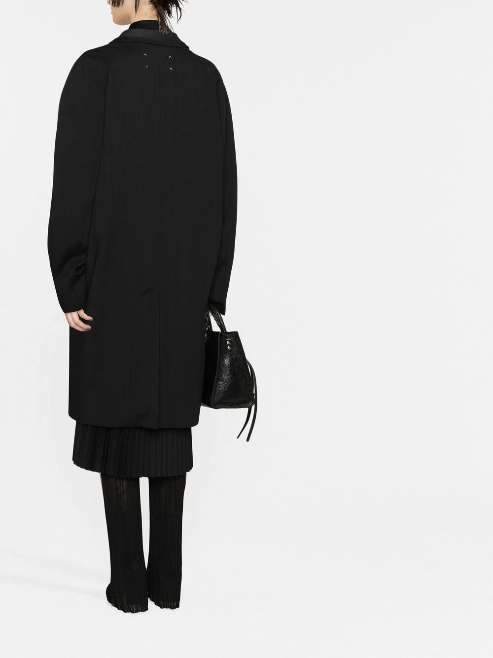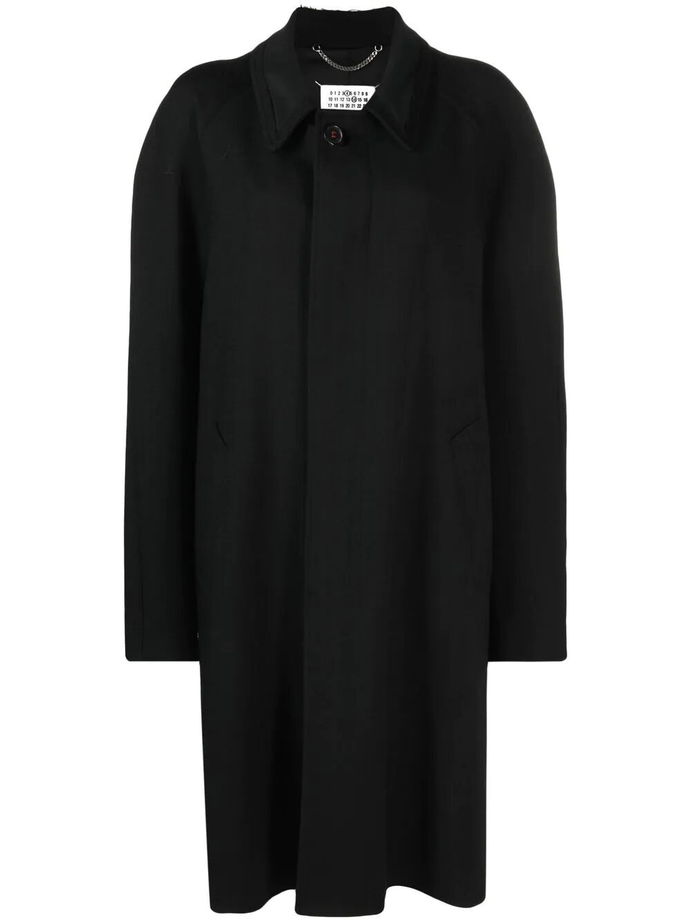 Add a touch of sophistication to your wardrobe with our single-breasted coat. Made of high-quality black cotton, it features our signature four-stitch logo and a classic collar. The concealed front fastening and two diagonal pockets provide both style and functionality. Stay warm and stylish with this timeless piece.