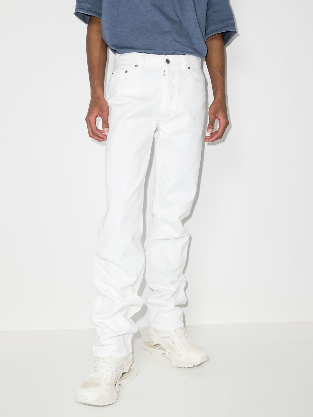 Stay sleek and stylish with these straight-leg cotton jeans from Maison Margiela. With a minimalist aesthetic and tonal white design, these jeans offer a classic silhouette that will elevate any outfit.