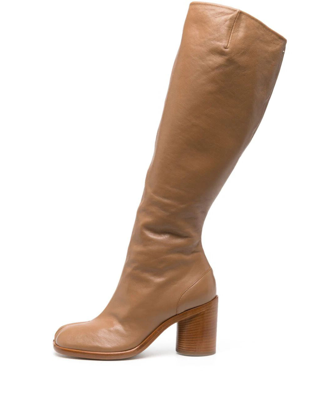 Slip into style with TABI BOOTS H80 - a knee-high boot made from rich brown calf leather. With a signature Tabi toe and side zip fastening, these boots are as practical as they are stylish. The 85mm high block heel adds a touch of height while still being comfortable. Perfect for any trendy fashion lover.