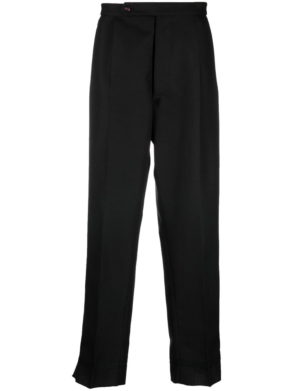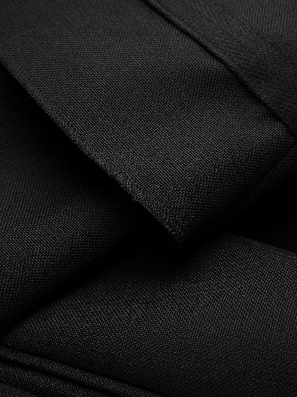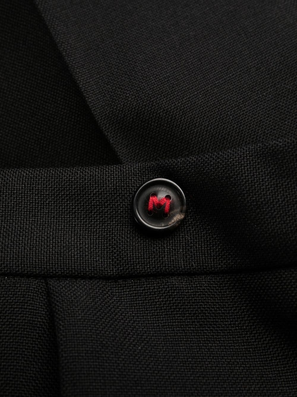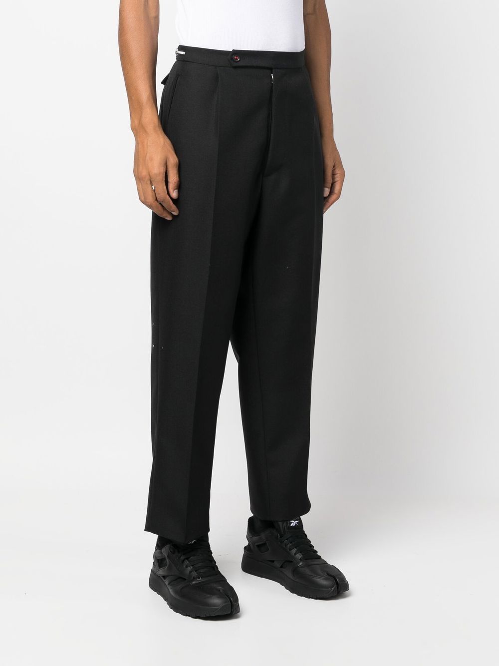 Upgrade your wardrobe with these jet black tailored mohair trousers. Made from a luxurious mohair-wool blend, these mid-rise trousers feature a tapered leg for a flattering fit. The decorative zip detailing and concealed front fastening add a touch of uniqueness to these classic trousers. Plus, with a convenient rear flap pocket, you'll stay stylish and organized all day long.