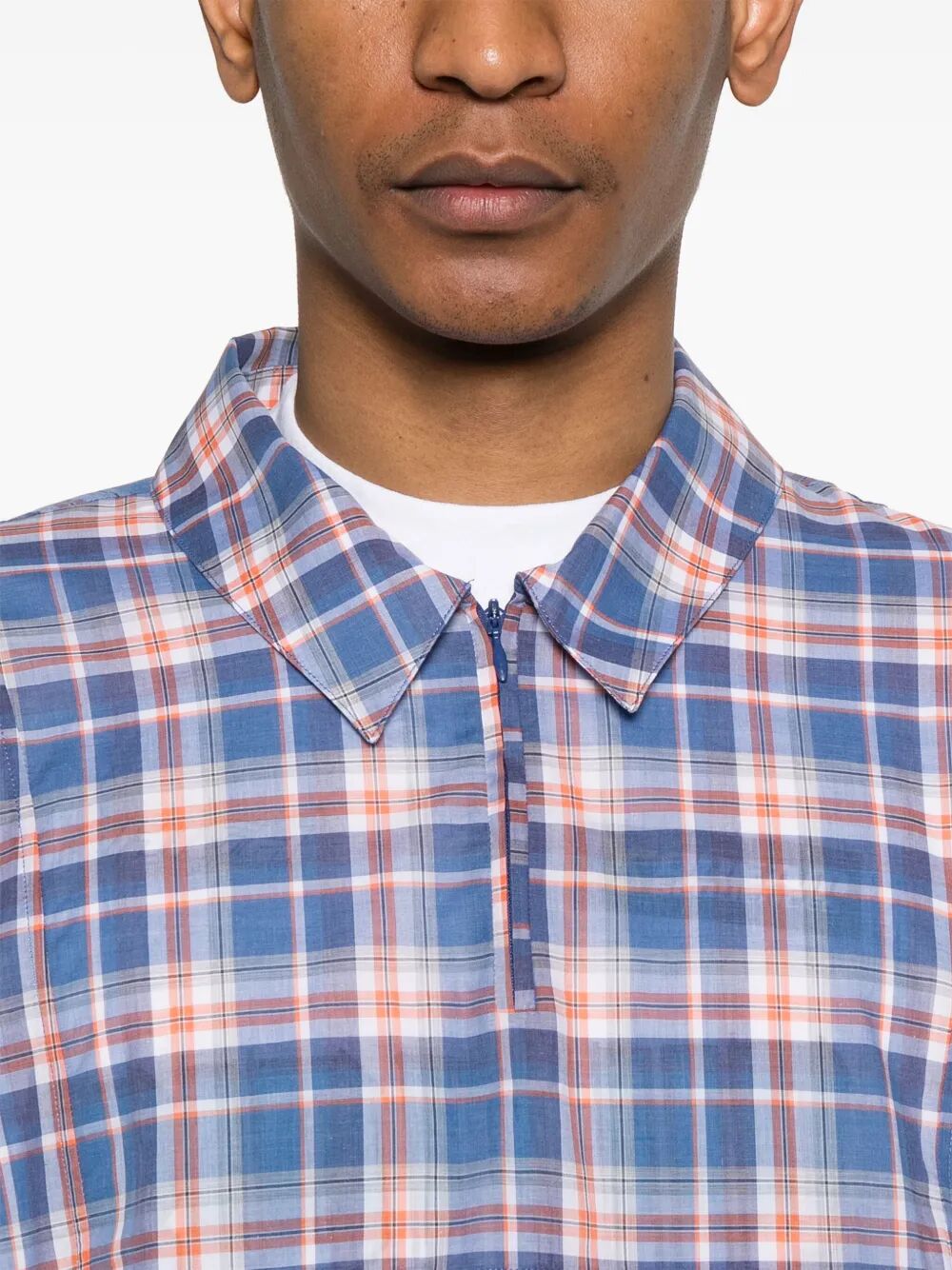 Add some color to your wardrobe with our indigo blue checked polo shirt. Featuring a half front zip fastening, polo collar, and short sleeves, it's both stylish and comfortable. Plus, the embroidered logo adds a touch of personality. Don't miss out on this must-have.