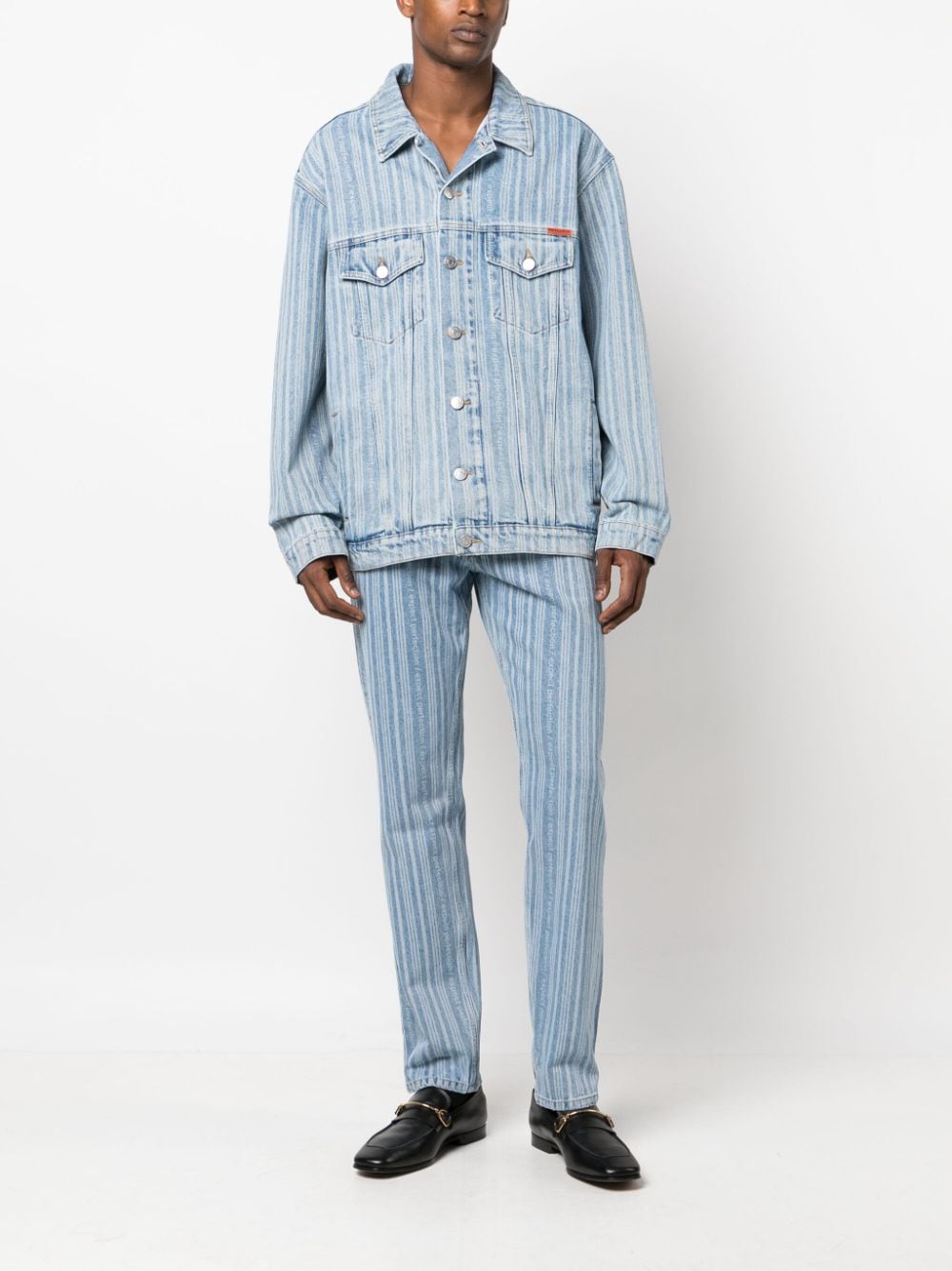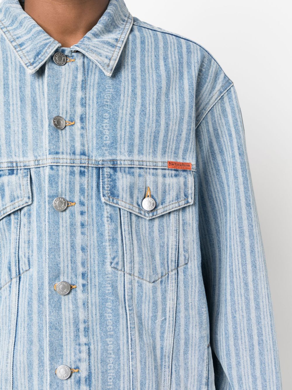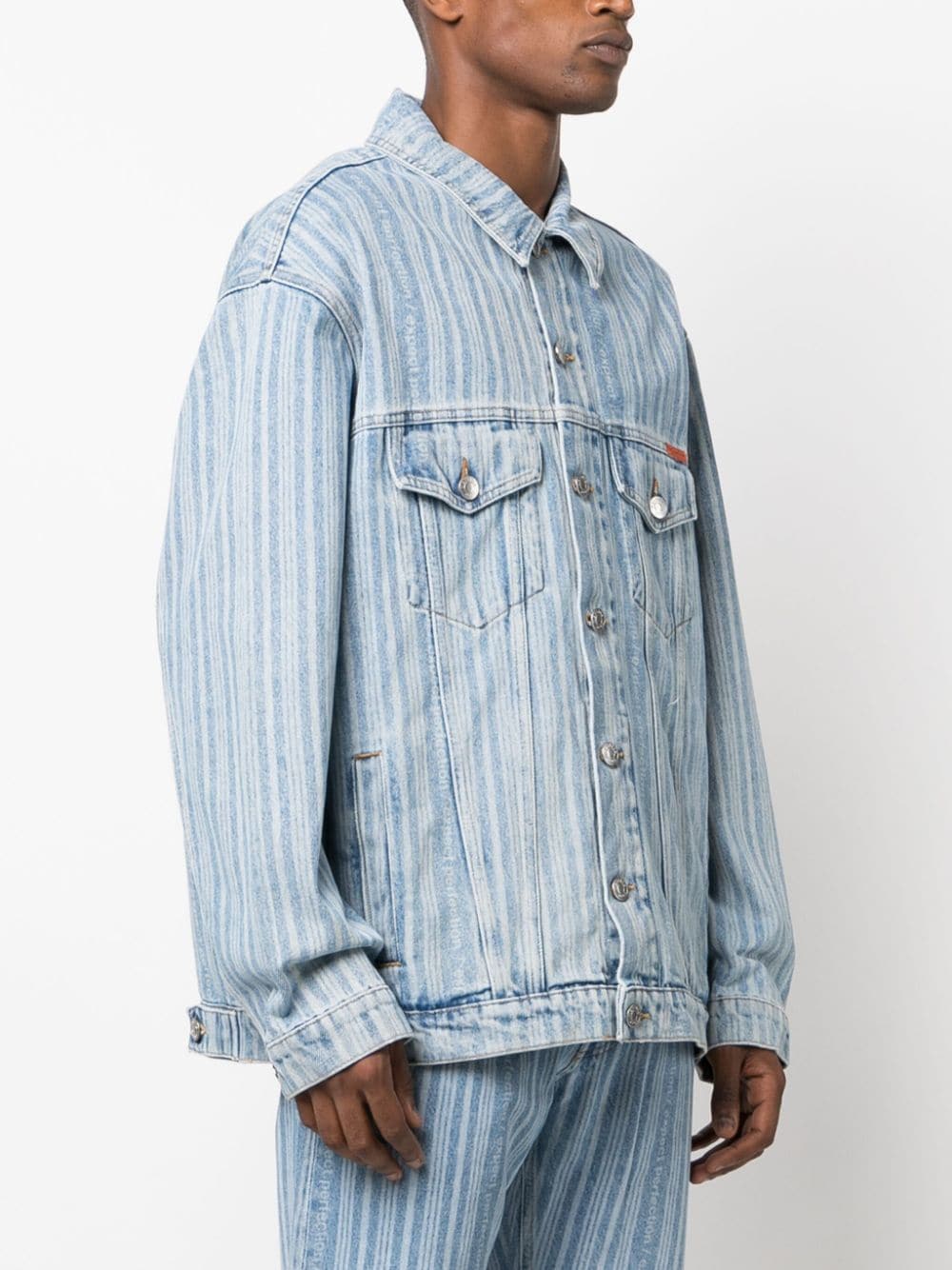 Elevate your denim game with this playful striped jacket. With a light-blue wash and pinstripe print, this jacket effortlessly combines style and comfort. Featuring a logo patch, button fastening, and plenty of pockets, it's the perfect mix of quirky and practical.