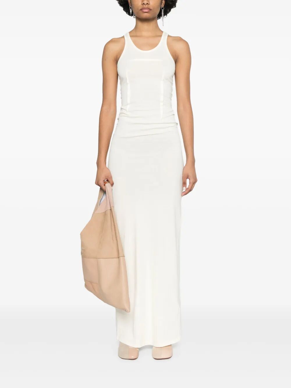 Stay comfortable and effortlessly chic in our Maxi Cotton Dress. The light beige color adds a touch of elegance, while the scoop neck and sleeveless design provide a laid-back feel. Finished with our signature single-stitch logo, this versatile dress is a must-have for any wardrobe.