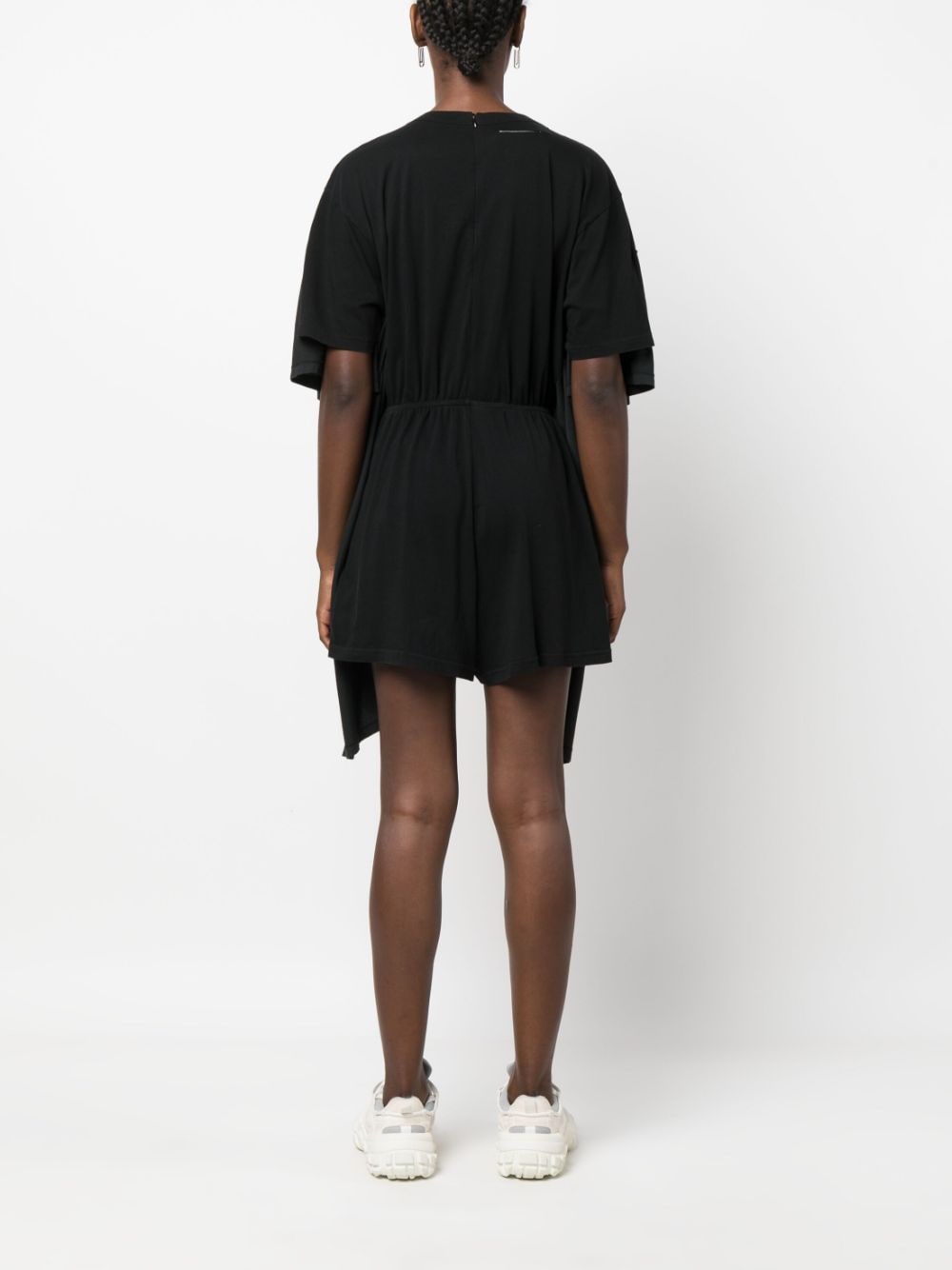 Step out in style with our smoky black numbers-print cotton playsuit. This playful piece features a signature numbers motif and logo print on the front, along with exposed-seam and draped detailing. The layered design and asymmetric hem add unique flair, while the rear zip fastening and elasticated waistband ensure a comfortable fit. Perfect for a day or night out.