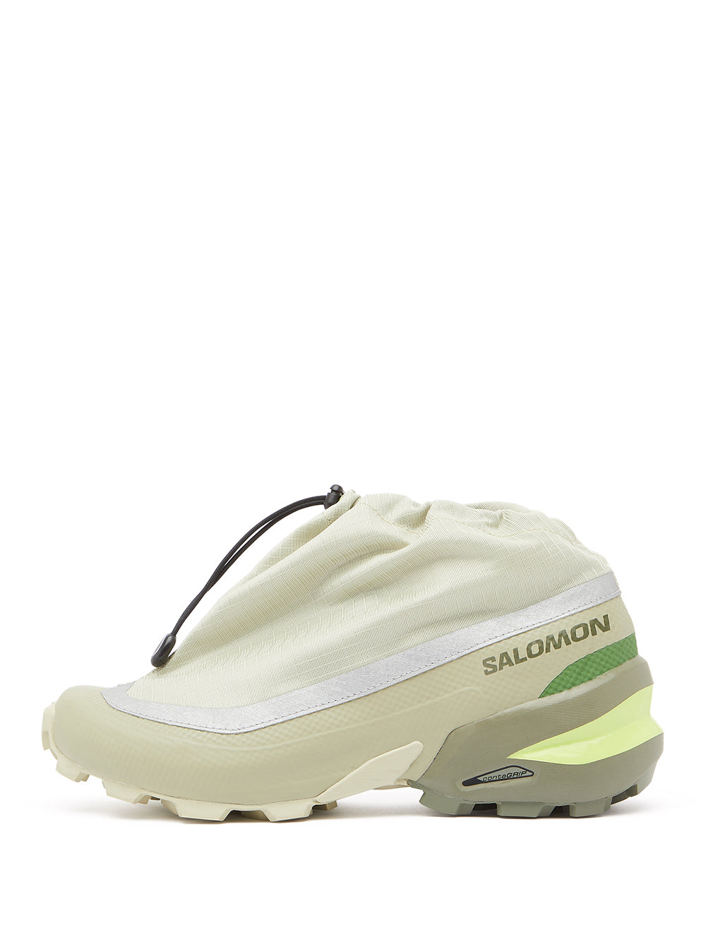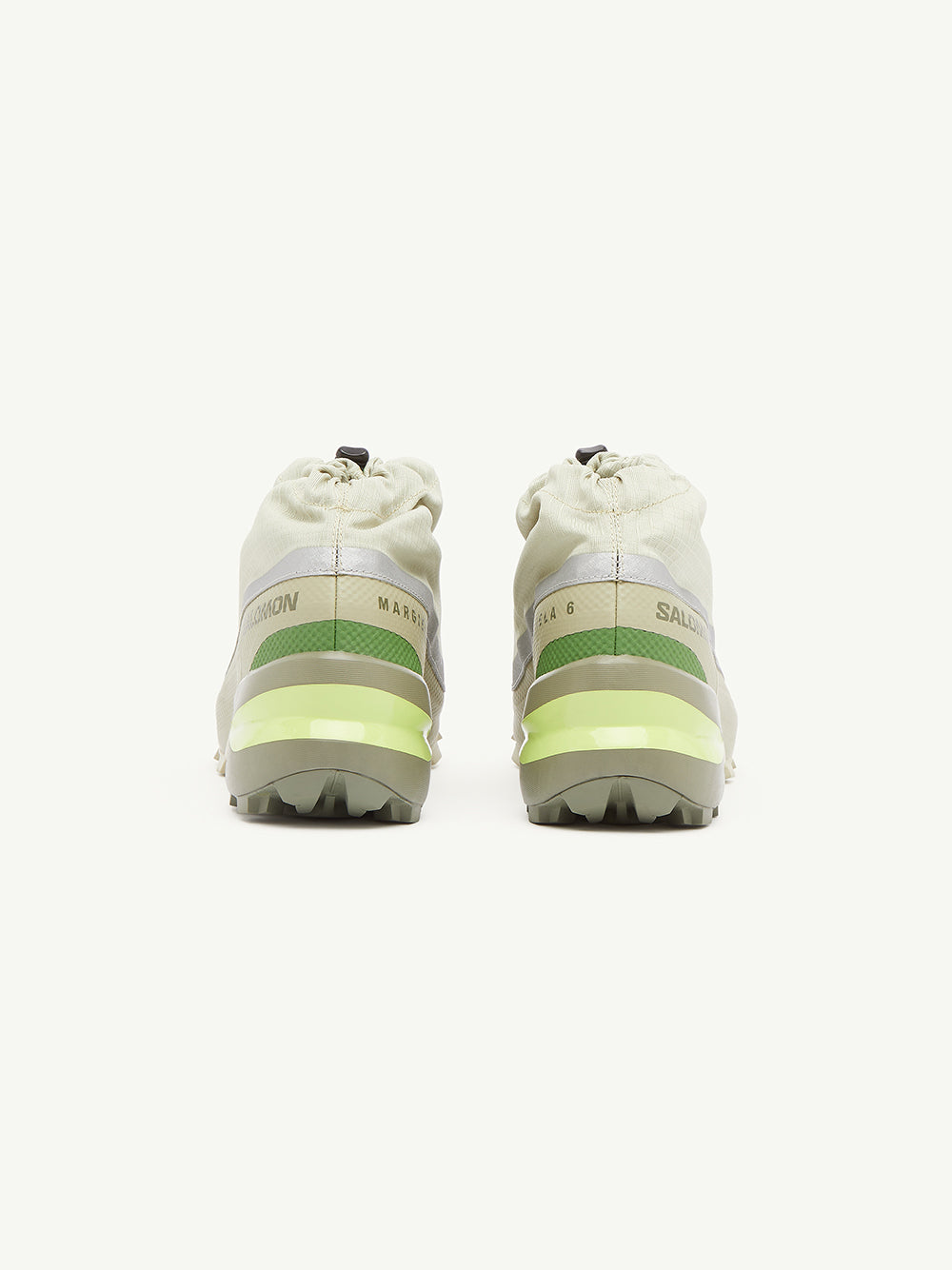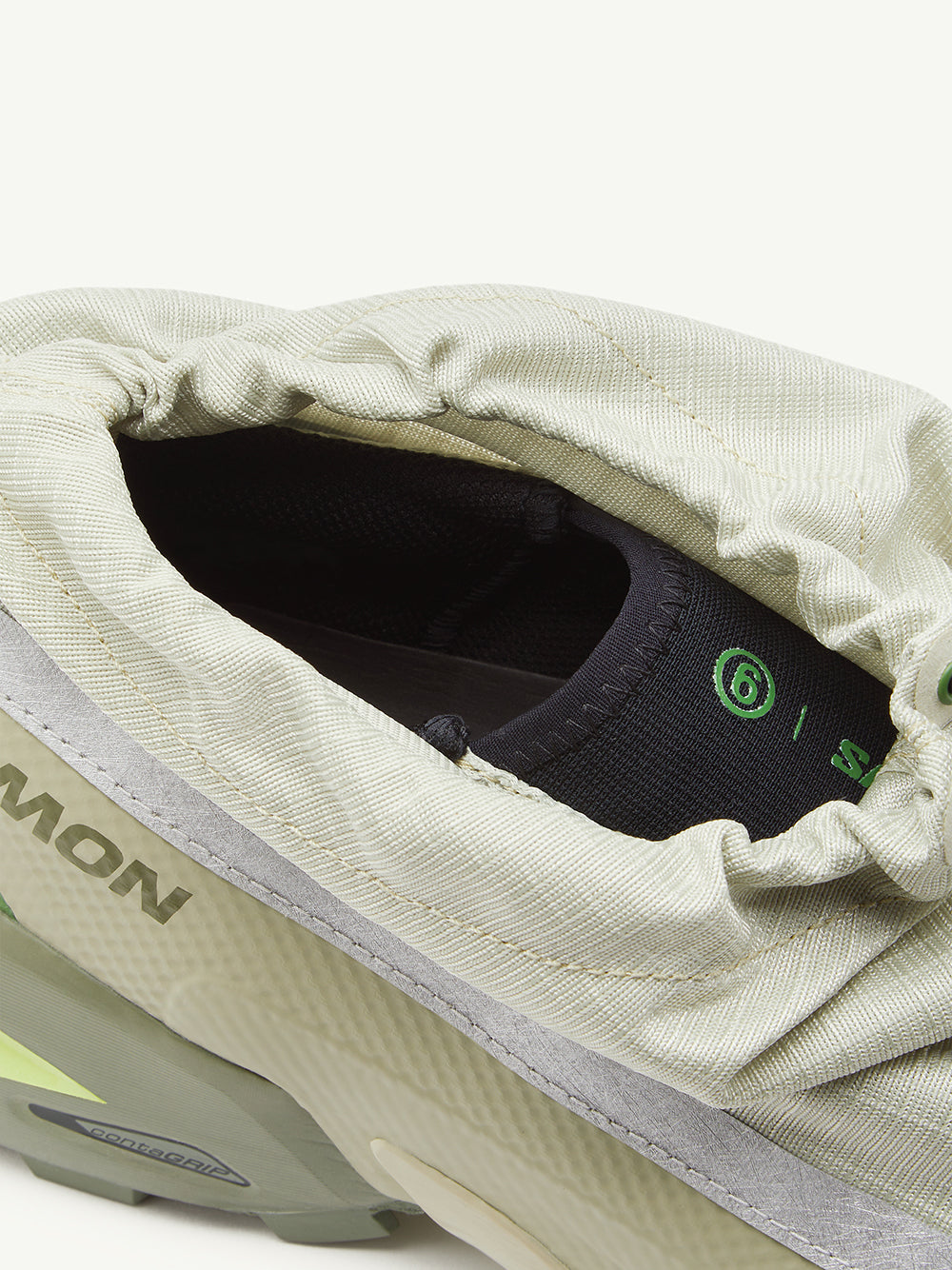 Add a pop of color and style to your wardrobe with the CROSS LOW MM6 MAISON MARGIELA X SALOMON sneakers. The striking green ripstop texture, faux-leather trim, and top drawstring fastening combine for a unique and edgy look. Perfect for any adventure, the ankle-length sneakers feature a branded heel counter, tonal toecap, and full lining for comfort. Complete with a branded insole and rubber tread sole for added durability.