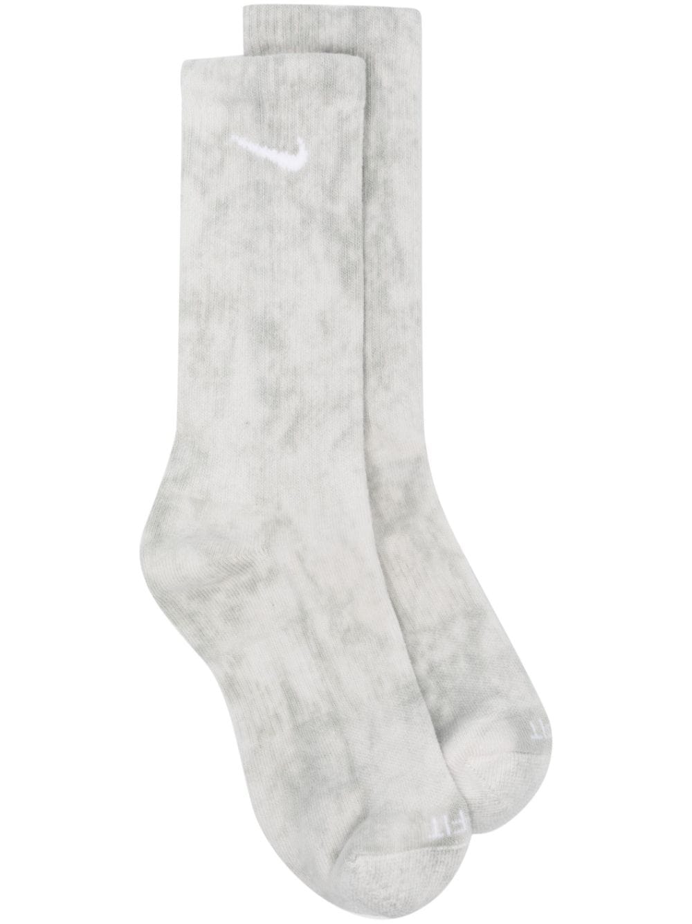 Introducing our Cushioned Crew Socks: the perfect blend of style and comfort. With a trendy tie dye effect and the iconic Nike logo, these grey and white socks will keep your feet cozy and stylish all day long.