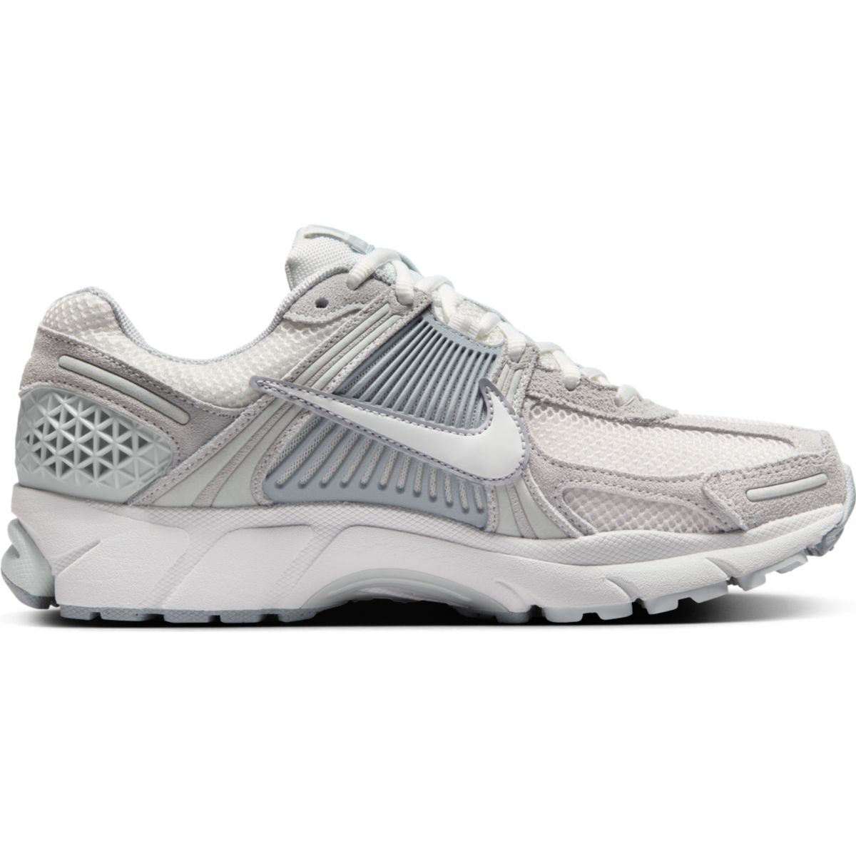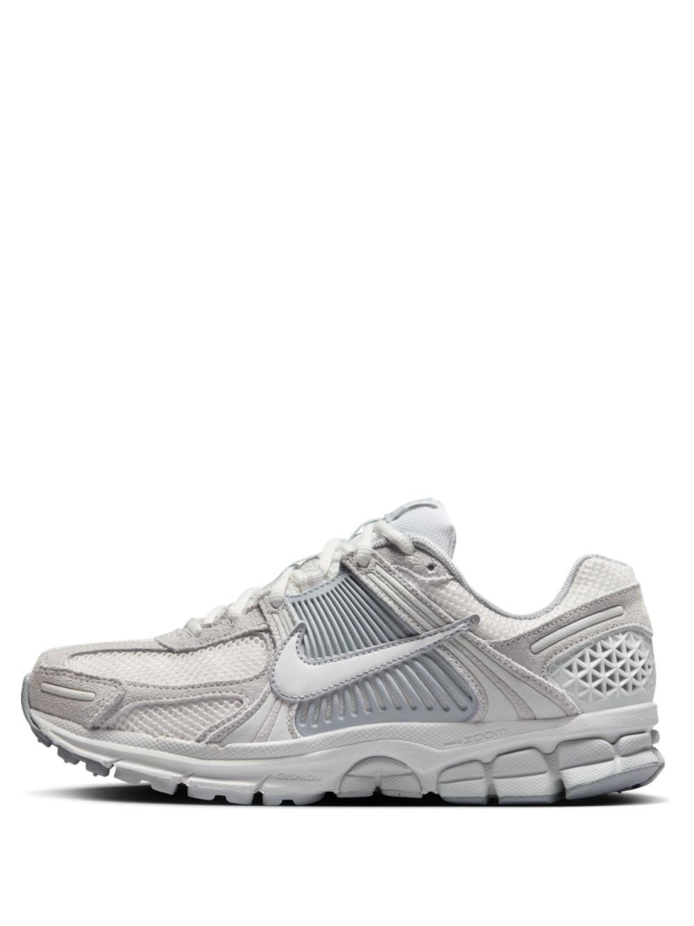 Step up your style game with our W NIKE ZOOM VOMERO 5 sneakers. These kicks feature a sleek light grey/ash grey design accented with faux leather and mesh panelling. The appliqué logo and logo patch add a touch of flair, while the round toe and front lace-up fastening provide a comfortable fit. Complete with a branded insole and rubber sole, these sneakers are perfect for any casual look.