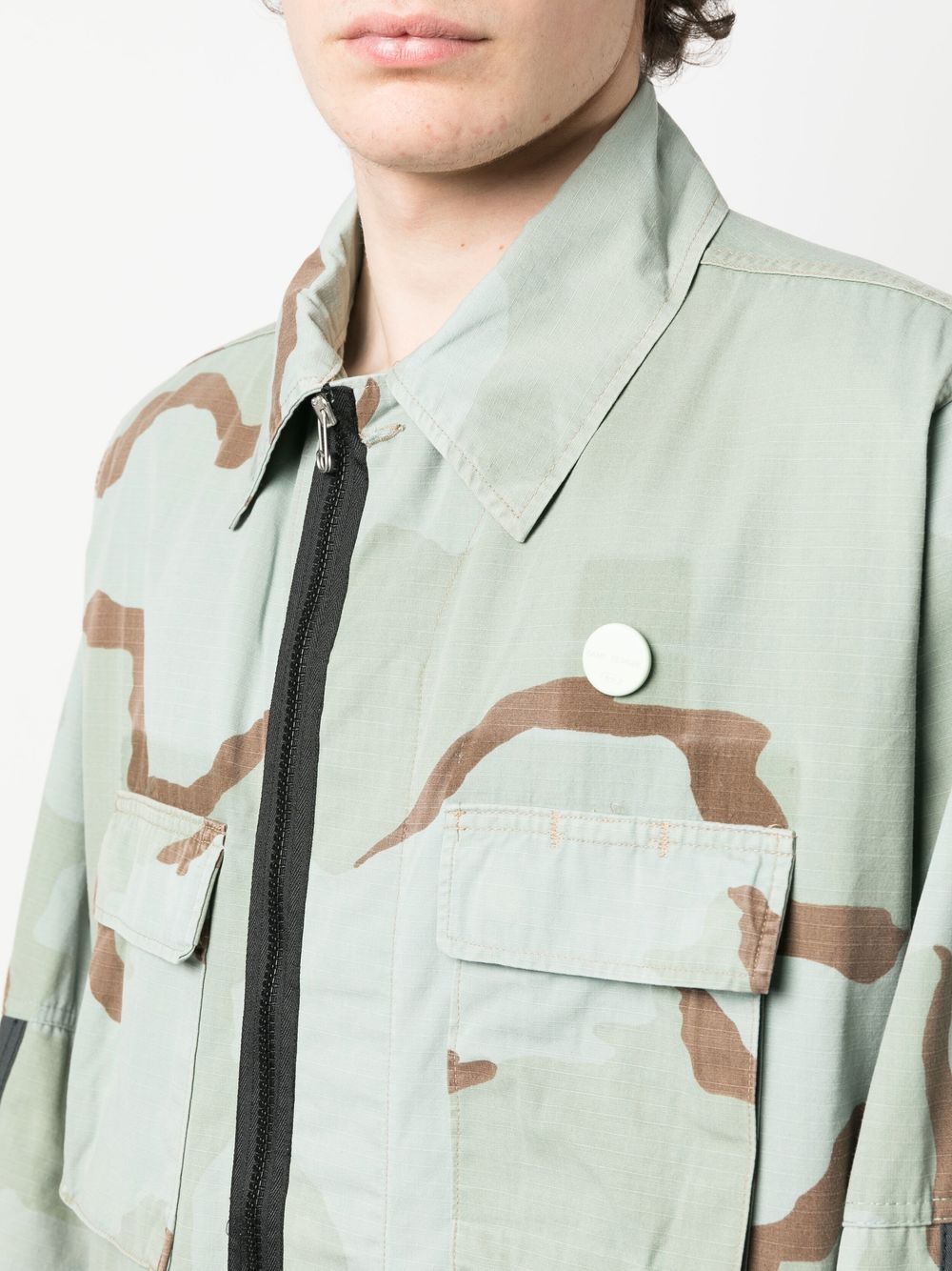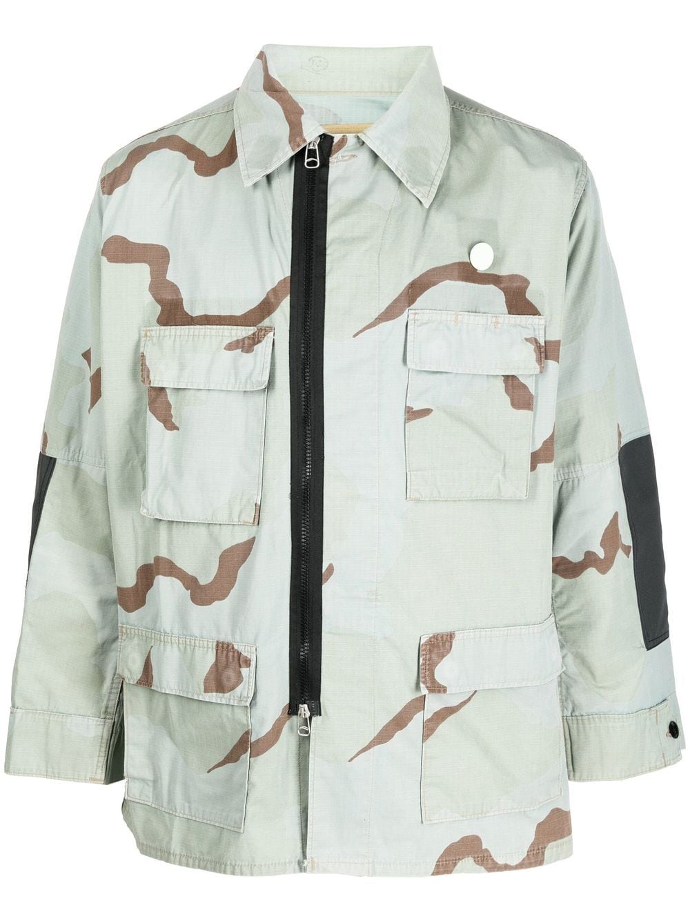 Introducing the RE:WORK BDU JACKET - a light green military-inspired coat with brown accents and 4 convenient front pockets. Perfect for adding a touch of quirky style to your wardrobe.